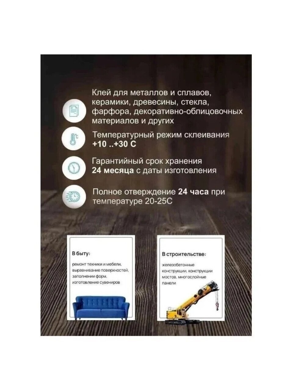 Данный клей является незаменимым подспорьем в быту. Применяемые в производстве клея современные синтетические смолы отличаются малой усадкой, высокой адгезией. Отвердевший клей не токсичен и не огнеопасен, и даже по окончании гарантийного срока клей пригоден для использования.