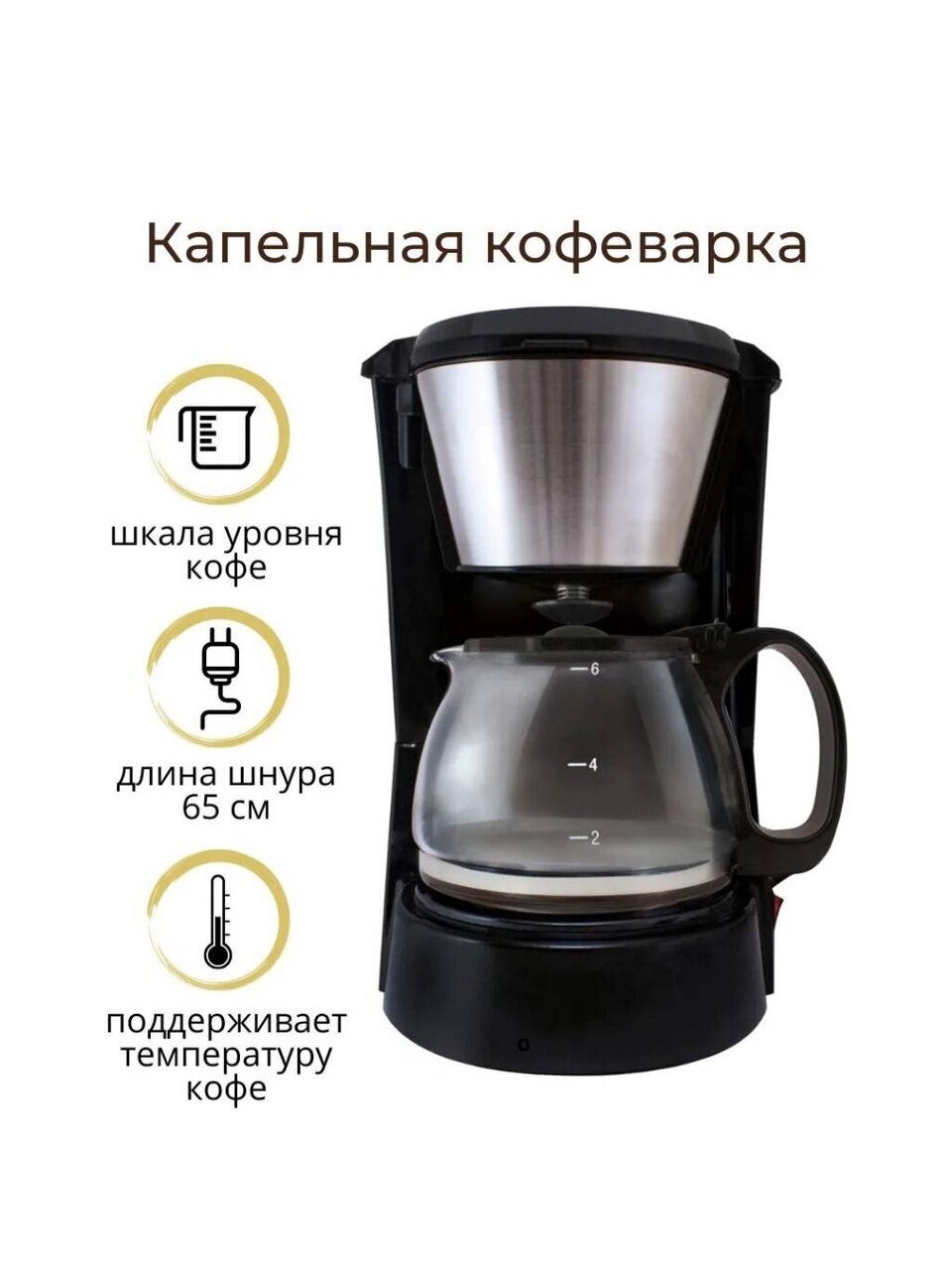 Технологичная модель кофе машины предназначена для приготовления кофе капельным методом. Благодаря компактным размерам её можно использовать и дома на кухне, и взять с собой в путешествие. Кофеварка проста и удобна в использовании, что поможет сэкономить время. Кофе машинка поддерживает постоянную температуру кофе в ёмкости, сохраняя его вкус и аромат. Кофеварка капельного типа имеет объем 750 мл. Многоразовый съемный нейлоновый фильтр кофеварки улавливает примеси, не давая им попасть в чашку.