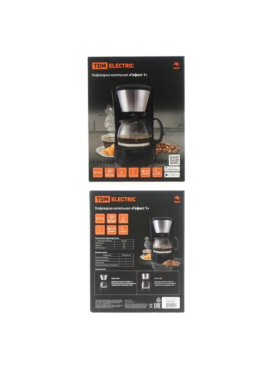 Вы можете приобрести «Кофеварка электрическая, капельная, пластик, 0.75 л, TDM Electric, Гефест-1, 650 Вт, 6 порций, съемный фильтр, поддержание температуры, SQ4014-0001» и другие товары в нашем интернет-магазине в Казани по низким ценам и с бесплатным самовывозом.