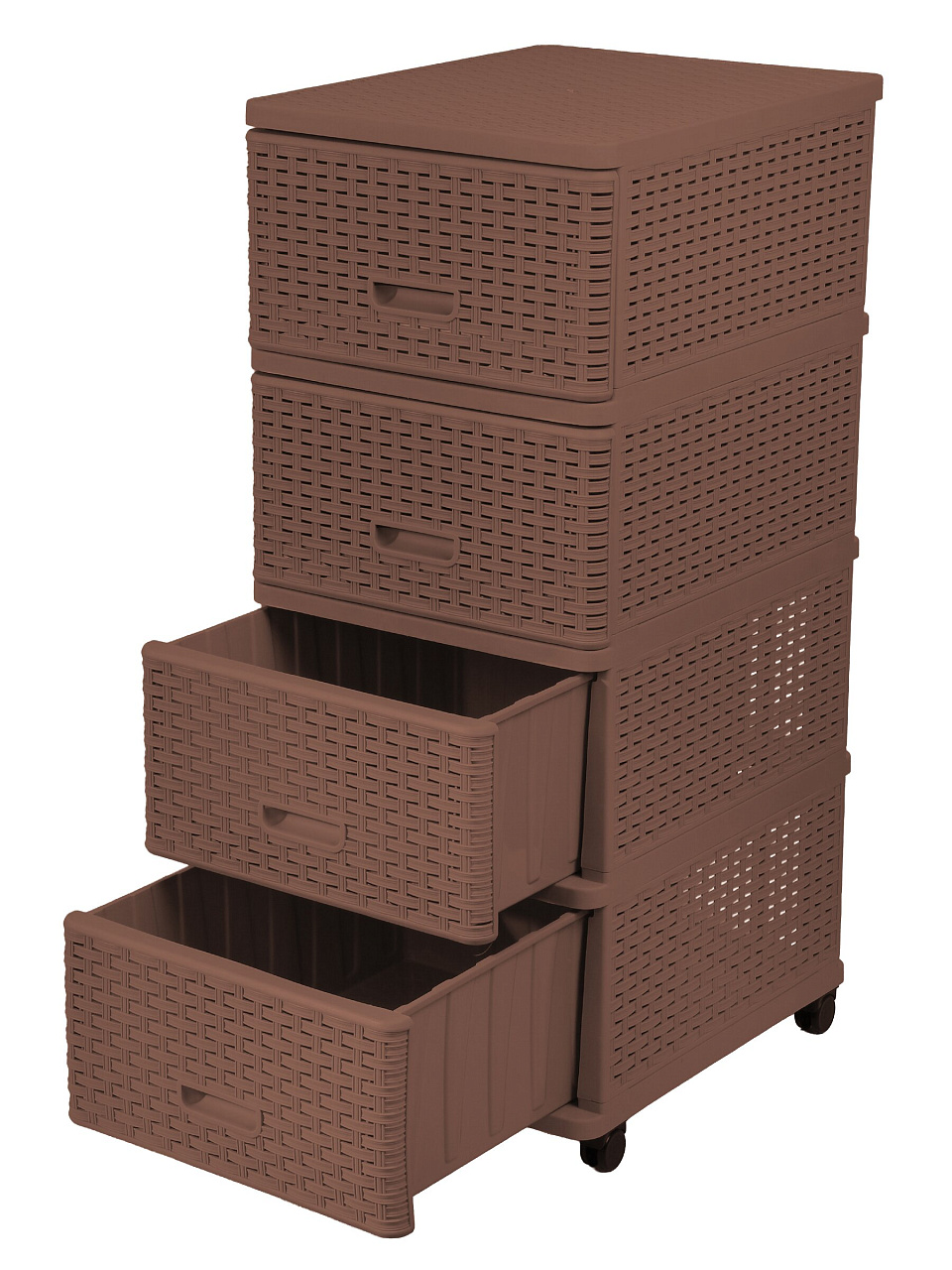 Комод 4 ящика Дюна 40х50х98 см — практичное и стильное решение для хранения вещей в любом современном интерьере. Благодаря компактным размерам и узкой форме комод идеально впишется даже в ограниченное пространство, позволяя организовать порядок в доме или на даче. Коричневый цвет и плетеная фактура фасадов придают изделию актуальный внешний вид, который легко сочетается с различными стилями оформления помещений. Прочный пластик обеспечивает долгий срок службы, устойчив к влаге и легко очищается, что особенно важно для ежедневного использования.