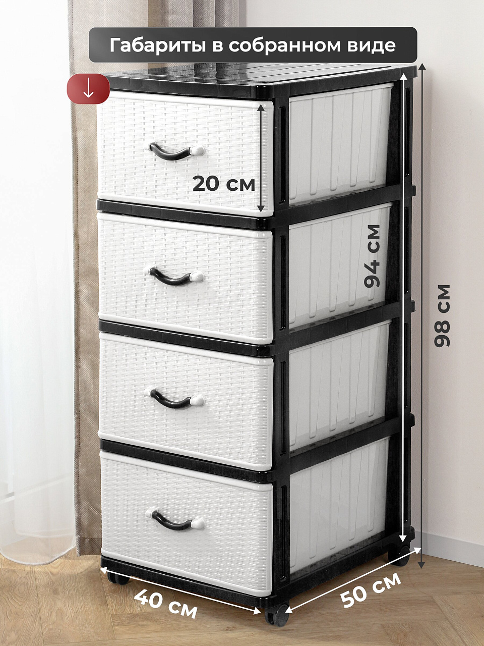Вы можете приобрести «Комод 4 ящика, Дюна, 40х50х94 см, черно-белый, 04014, Dunya Plastik» и другие товары в нашем интернет-магазине в Брянске по низким ценам и с бесплатным самовывозом.
