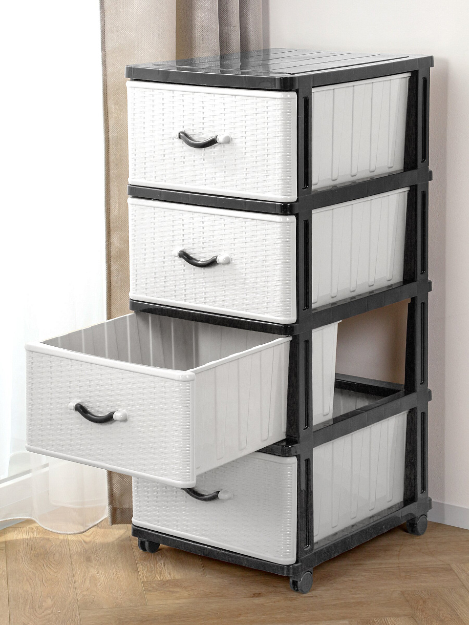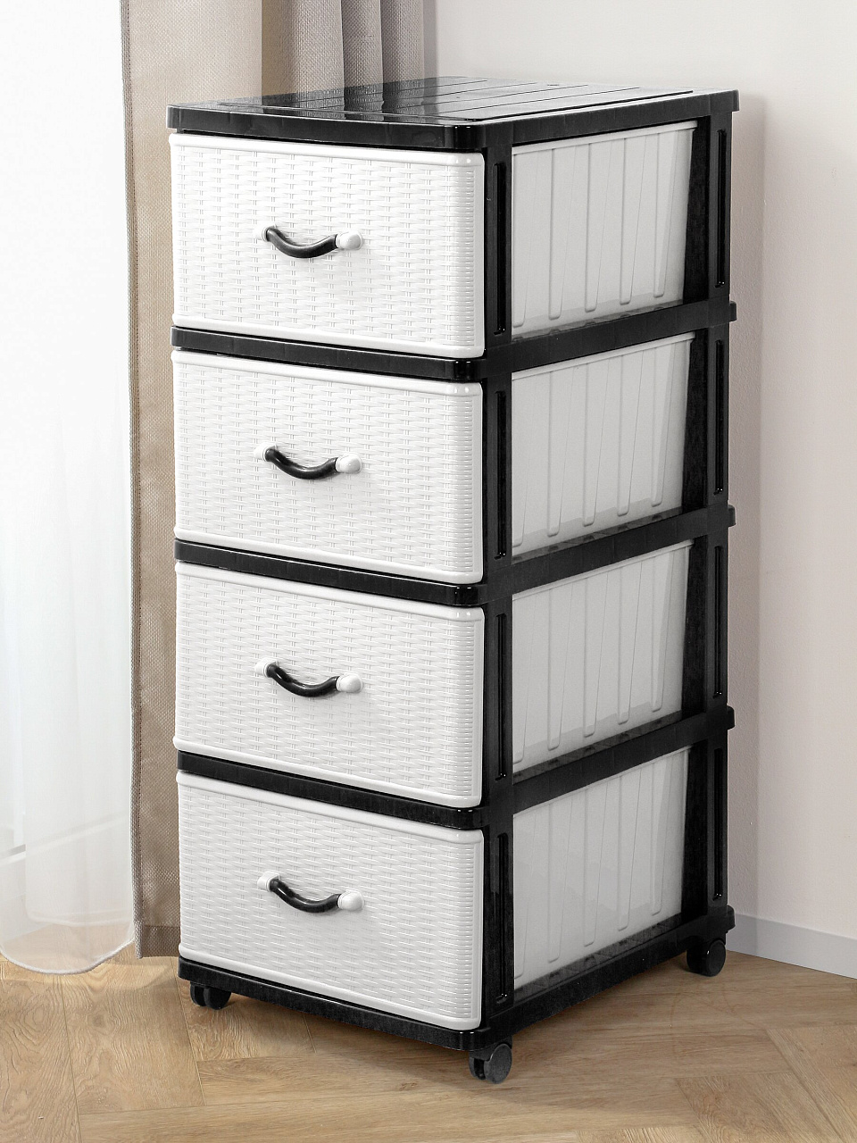 Вы можете приобрести «Комод 4 ящика, Дюна, 40х50х94 см, черно-белый, 04014, Dunya Plastik» и другие товары в нашем интернет-магазине в Железногорске по низким ценам и с бесплатным самовывозом.