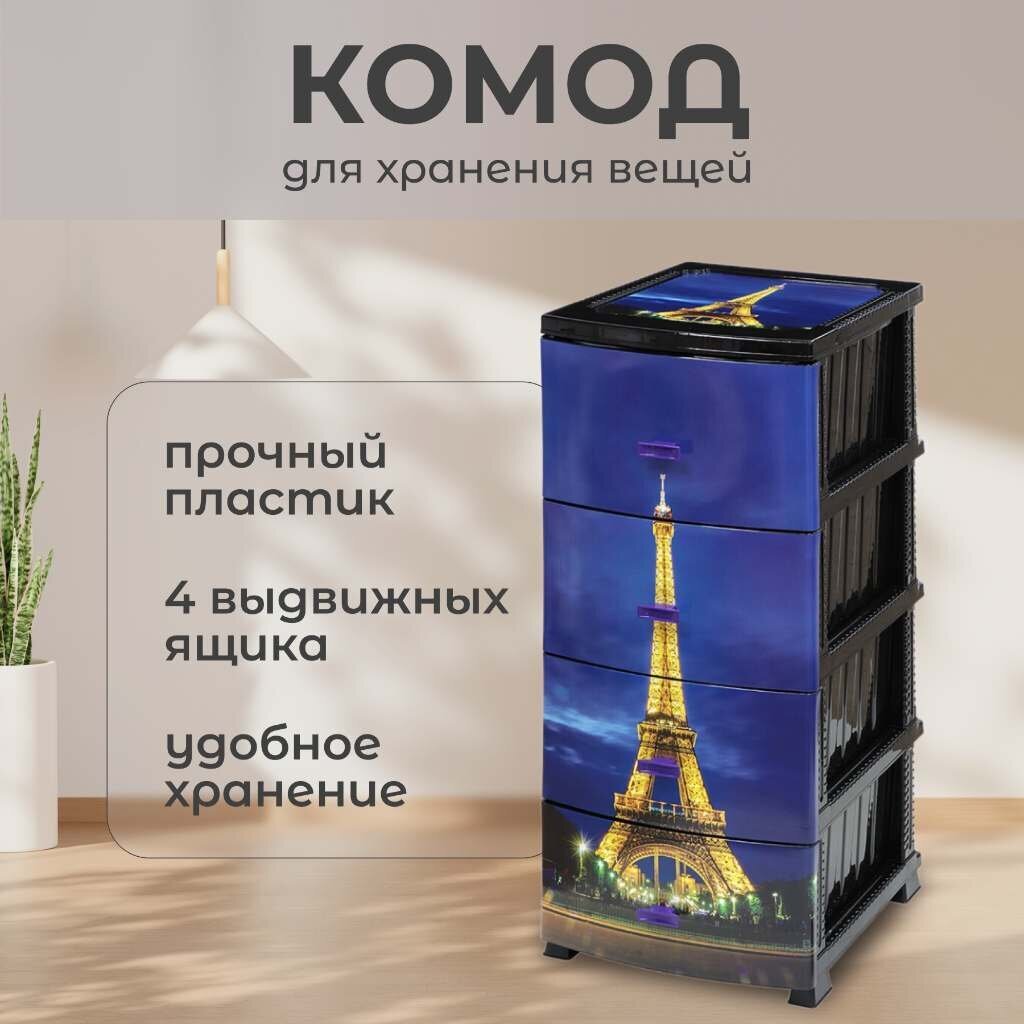 Вы можете приобрести «Комод 4 ящика, Париж, 38х47х98 см, черный, РП-451, Росспласт» и другие товары в нашем интернет-магазине в Липецке по низким ценам и с бесплатным самовывозом.