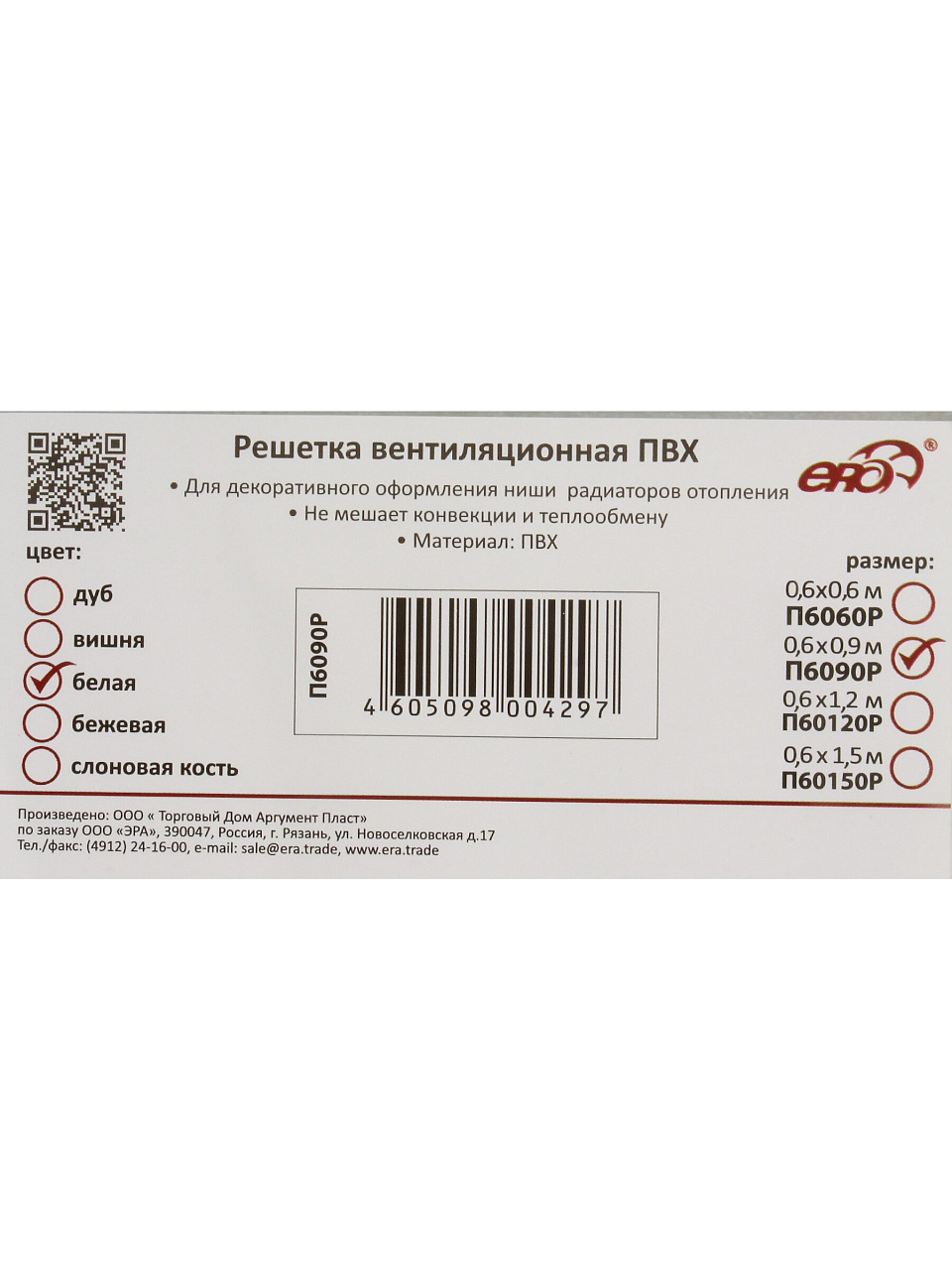 Решетка изготовлена из ПВХ, что позволило удачно совместить эстетичный внешний вид с невысокой ценой изделия. Конструкция очень просто монтируется и благодаря классическому цвету, будет органично смотреться как в доме, так и в офисном пространстве.