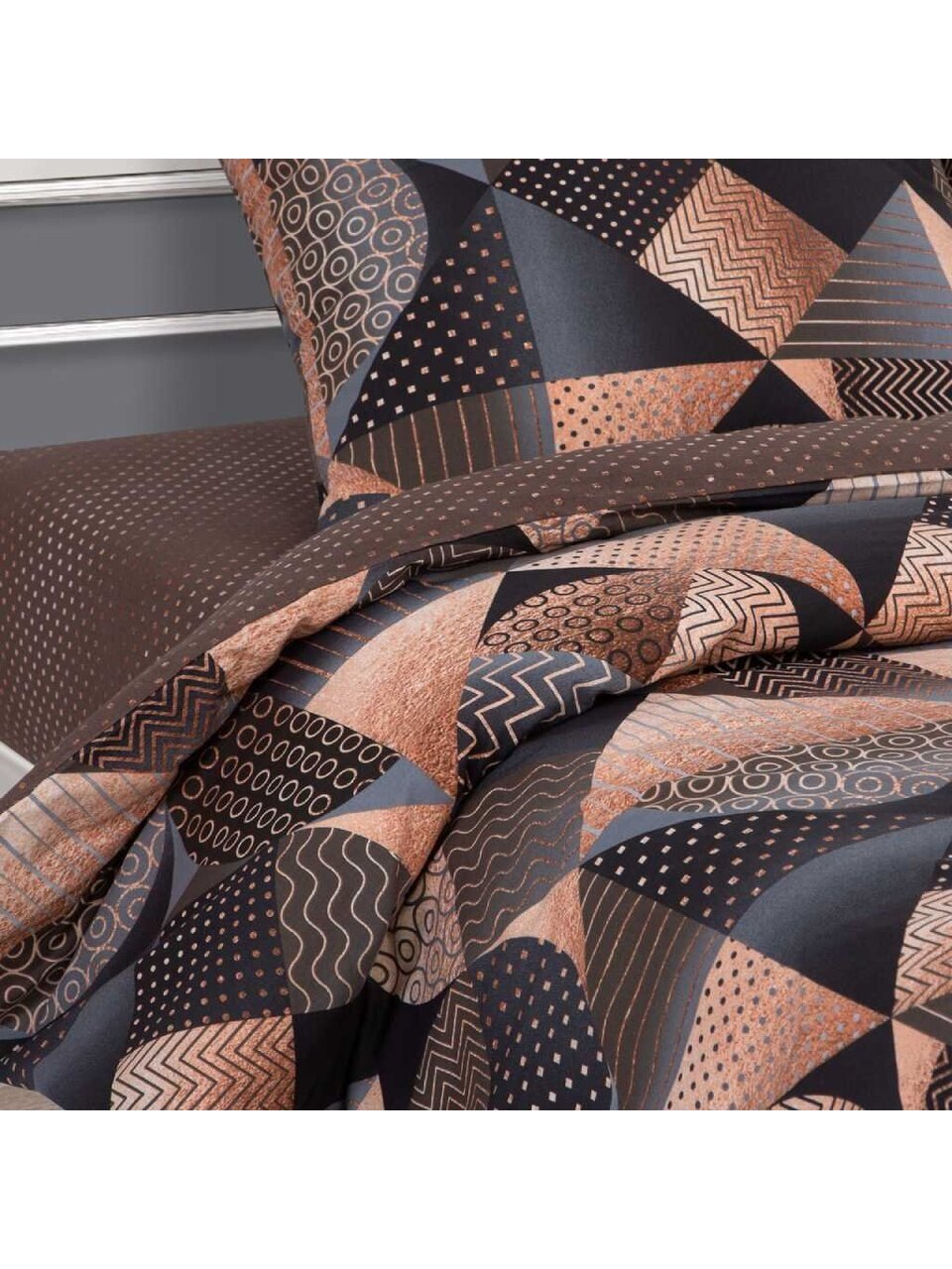 Если вы спрашиваете, чем отличается этот комплект от других, обратите внимание на отсутствие застежки у пододеяльника — это облегчает смену белья и продлевает срок службы ткани. Благодаря универсальному дизайну (абстракция, орнамент) и коричневому цвету, комплект гармонично впишется в любой интерьер спальни. Как использовать комплект? Просто застелите кровать — натуральный хлопок быстро сохнет и легко стирается при 40 градусах, что удобно для частого ухода.