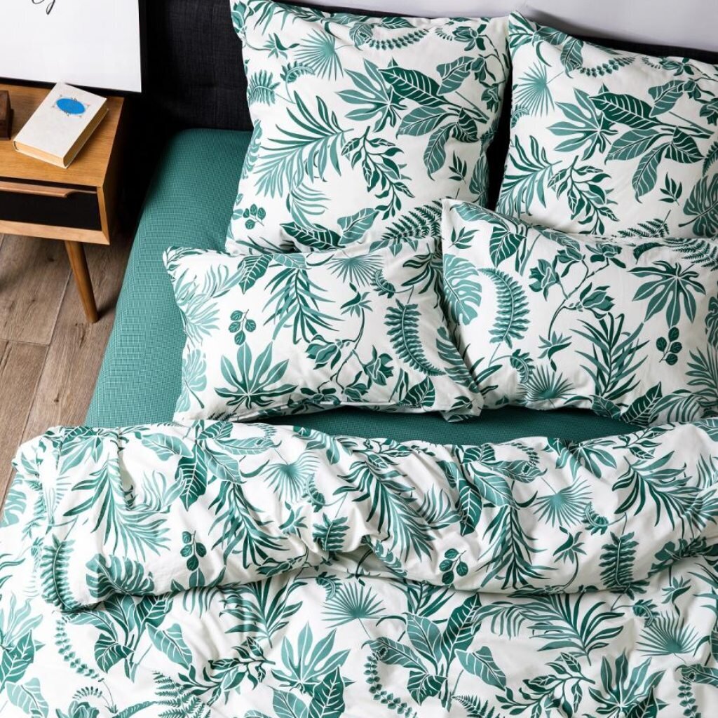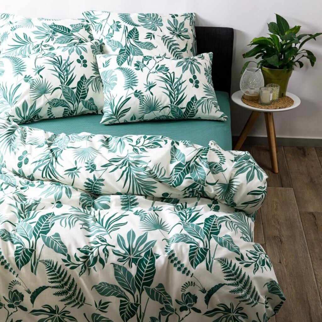 Комплект «Зеленые джунгли» выгоден для дачи и подарка: прочный хлопковый поплин, универсальный дизайн, подарочная упаковка и долговечность при частых стирках.