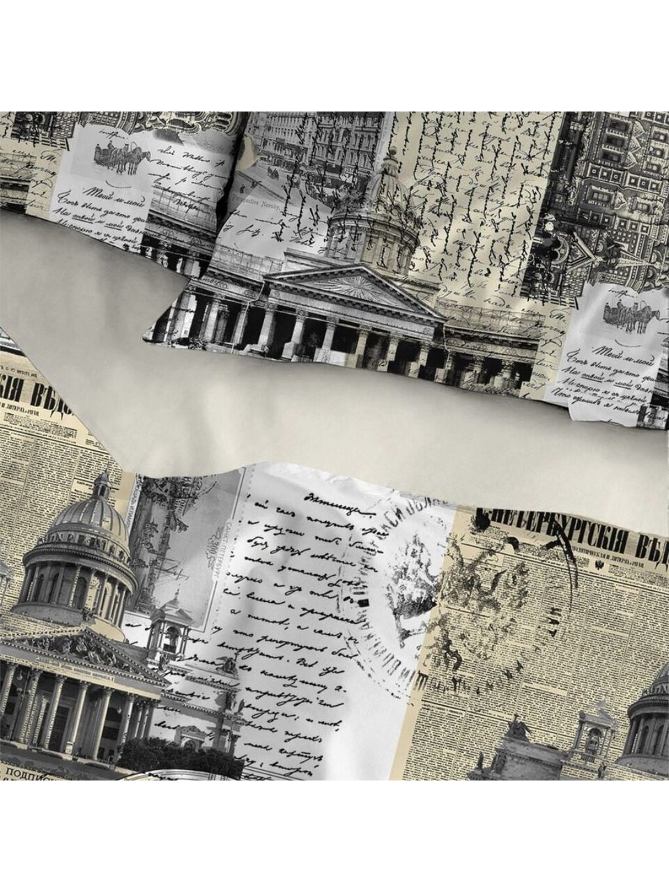 Часто спрашивают: «Как выбрать постельное белье для подарка?» — выбирайте этот комплект: он уже в подарочной упаковке и оформлен в универсальном бежевом цвете с модным городским принтом. В отличие от аналогов из синтетики, поплин не электризуется, не вызывает раздражения, легко стирается при 40° и быстро сохнет. Отсутствие резинки на простыне делает комплект универсальным для разных матрасов.