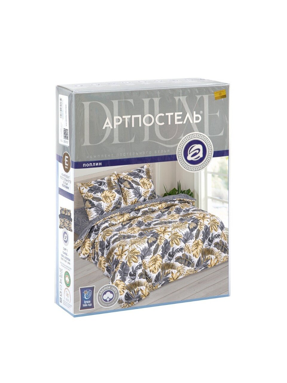 Постельное белье 1.5-спальное АртПостель «Тропикано» из поплина: простыня на резинке 140х200 см, 2 наволочки 70х70 см, пододеяльник 145х215 см — долговечность, комфорт и стиль для вашего сна.