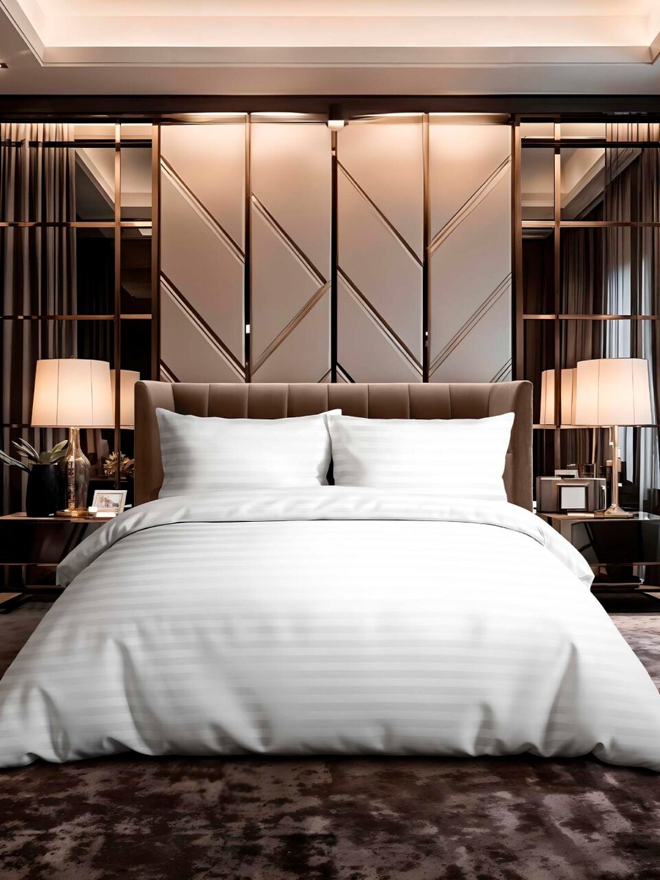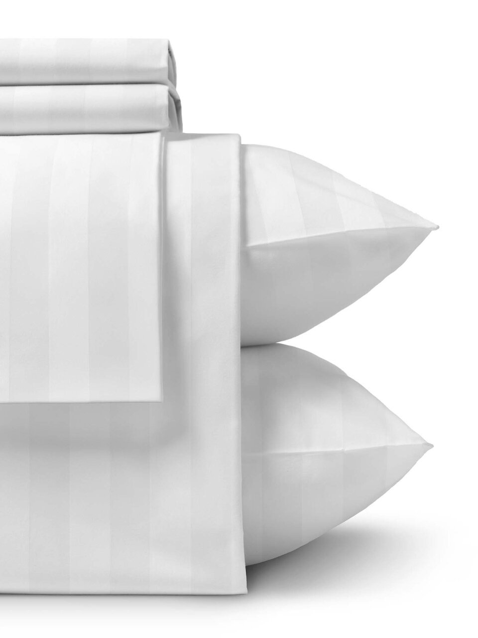 - Сатиновая ткань Stripe Royal — гладкая, шелковистая, долговечная: ощущение отеля дома.
