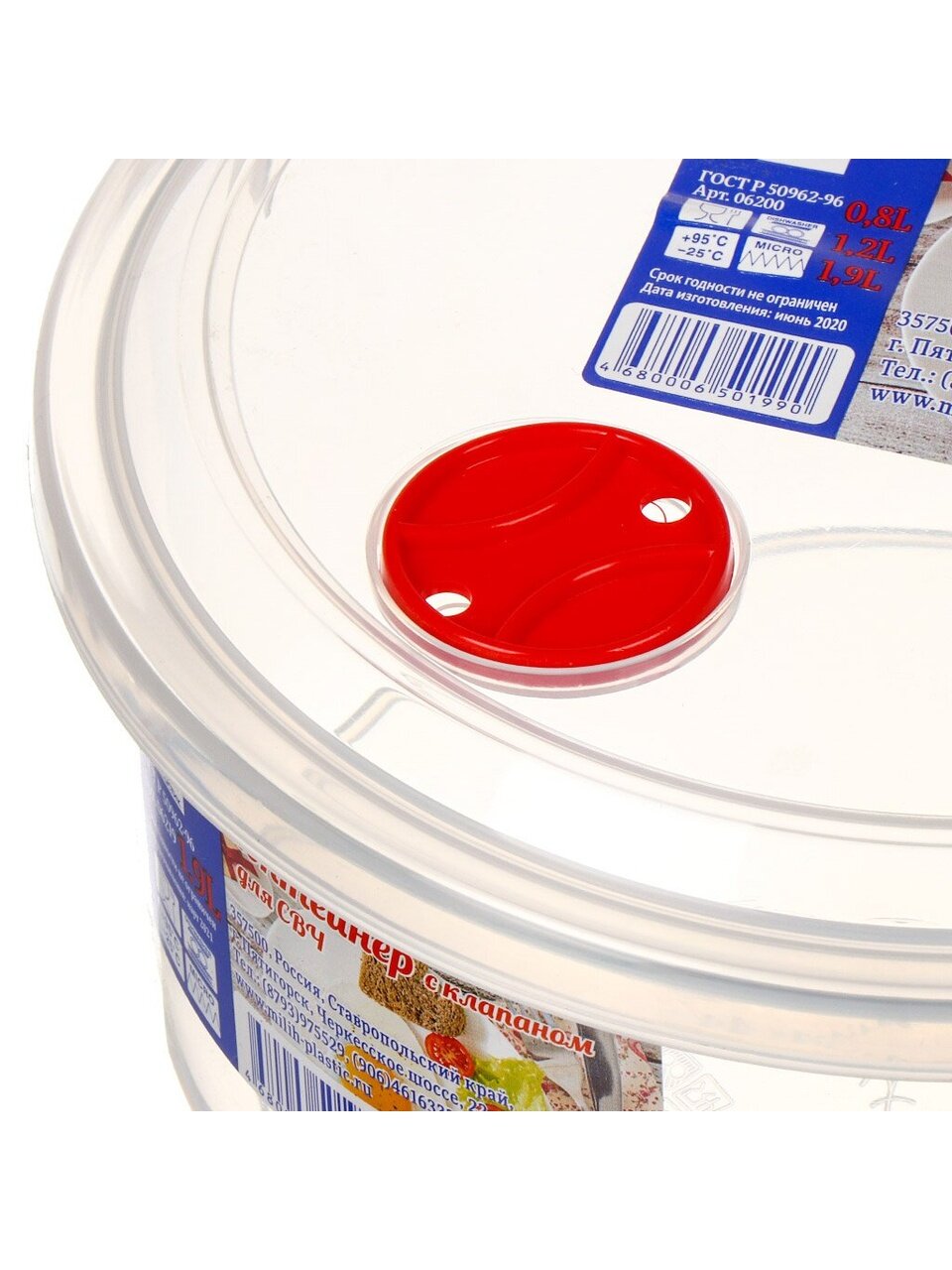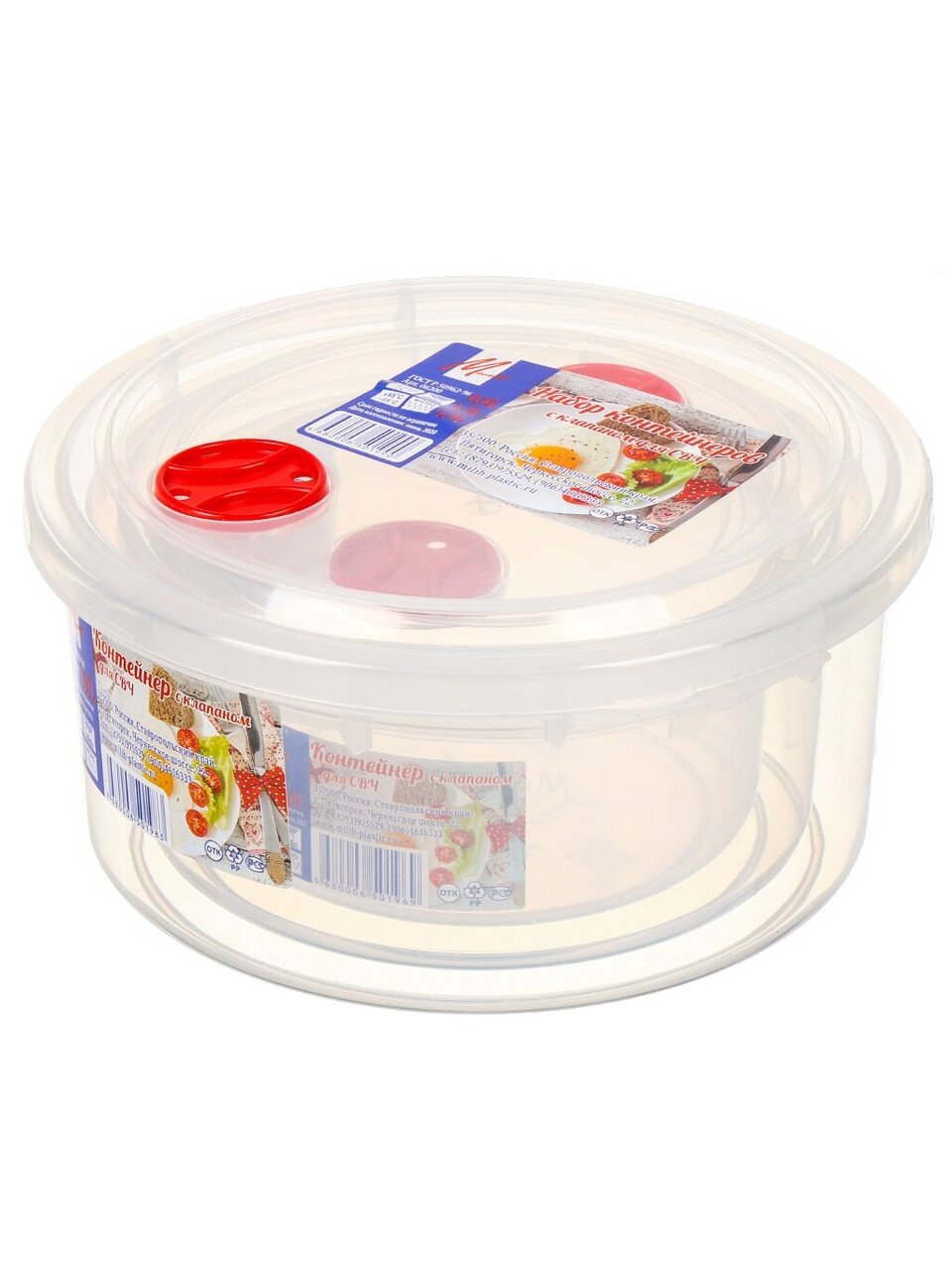 Пищевой контейнер из пластика с клапаном — это оптимальный выбор для тех, кто ищет, как удобно хранить еду дома, на даче или в офисе. Благодаря трём размерам (0.8, 1.2, 1.9 л) и круглой форме, контейнеры подходят для супов, салатов, гарниров и даже выпечки. Прозрачные стенки позволяют быстро определить содержимое, а клапан на крышке обеспечивает герметичность и безопасный разогрев в микроволновой печи без разбрызгивания.