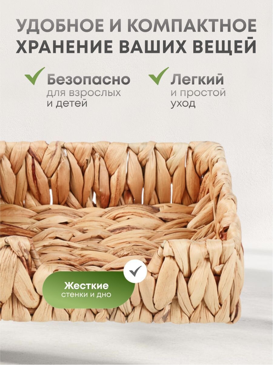 Плетеная корзина - классический элемент декора, который органично дополнит любой интерьер. Она отлично подойдет для хранения продуктов, канцелярских принадлежностей, предметов хобби и творчества.