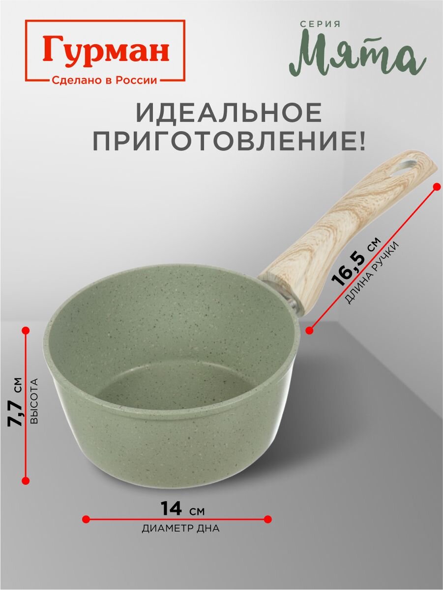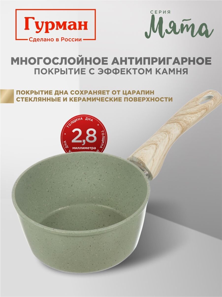 Вы можете приобрести «Ковш алюминий, антипригарное покрытие, 1.2 л, пластиковая ручка, индукция, Гурман, Мята, ГМкш161МЛ» и другие товары в нашем интернет-магазине в Иваново по низким ценам и с бесплатным самовывозом.