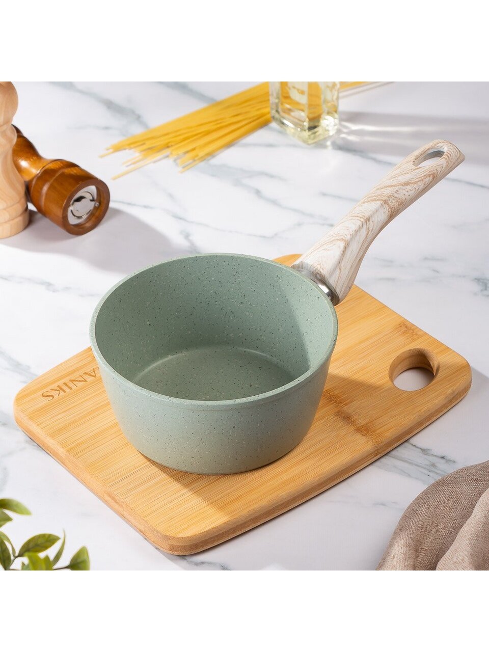Откройте для себя идеальный баланс между функциональностью и стилем с ковшом "Гурман Мята". Этот изысканный кухонный аксессуар станет незаменимым помощником на вашей кухне, добавив яркий акцент благодаря свежему мятному цвету. Ковш объемом 1,2 литра изготовлен из прочного алюминия и оснащен антипригарным покрытием, что делает его идеальным для приготовления различных блюд без лишних усилий.