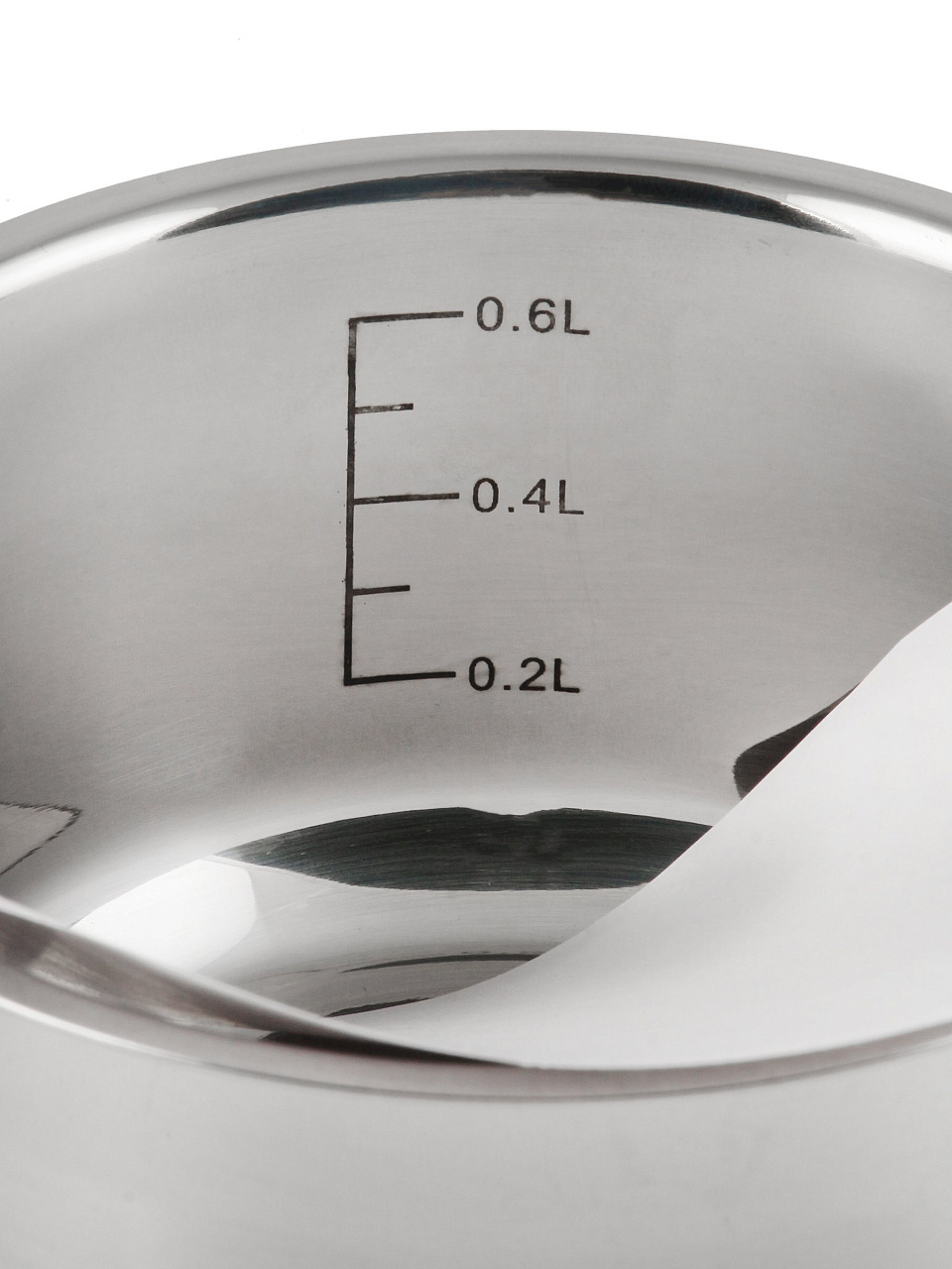 Объём 0.8 л, диаметр 13.2 см, толщина дна 2.5 мм, стенок 0.5 мм, металлическая ручка, крышка из закалённого стекла, мерная шкала внутри, цвет серебристый.