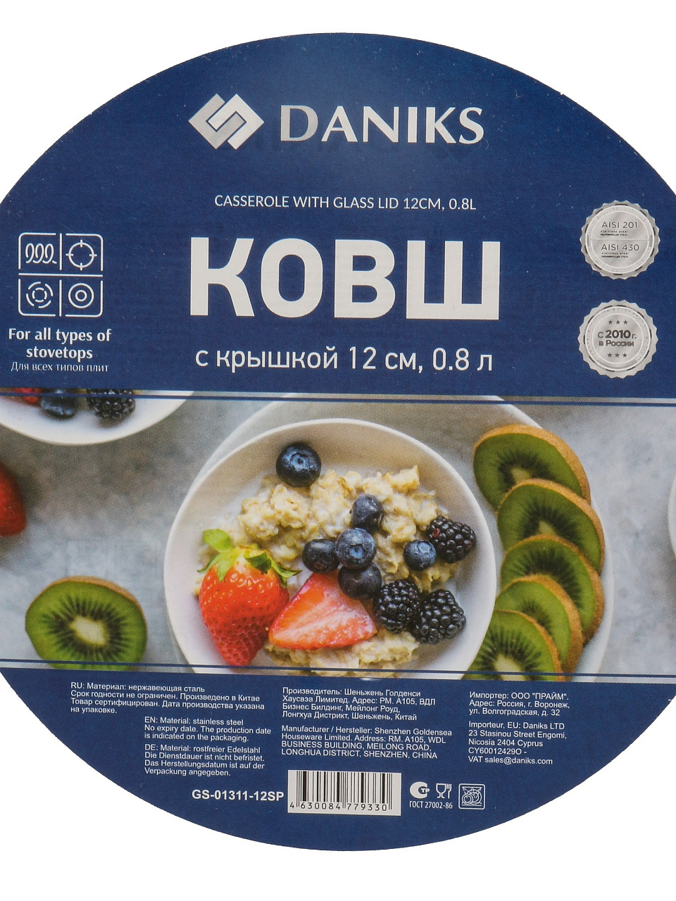 Вы можете приобрести «Ковш нержавеющая сталь, 0.8 л, крышка стекло, металлическая ручка, индукция, Daniks, GS-01311-12SP/SD-512S» и другие товары в нашем интернет-магазине в Нижнем Новгороде по низким ценам и с бесплатным самовывозом.