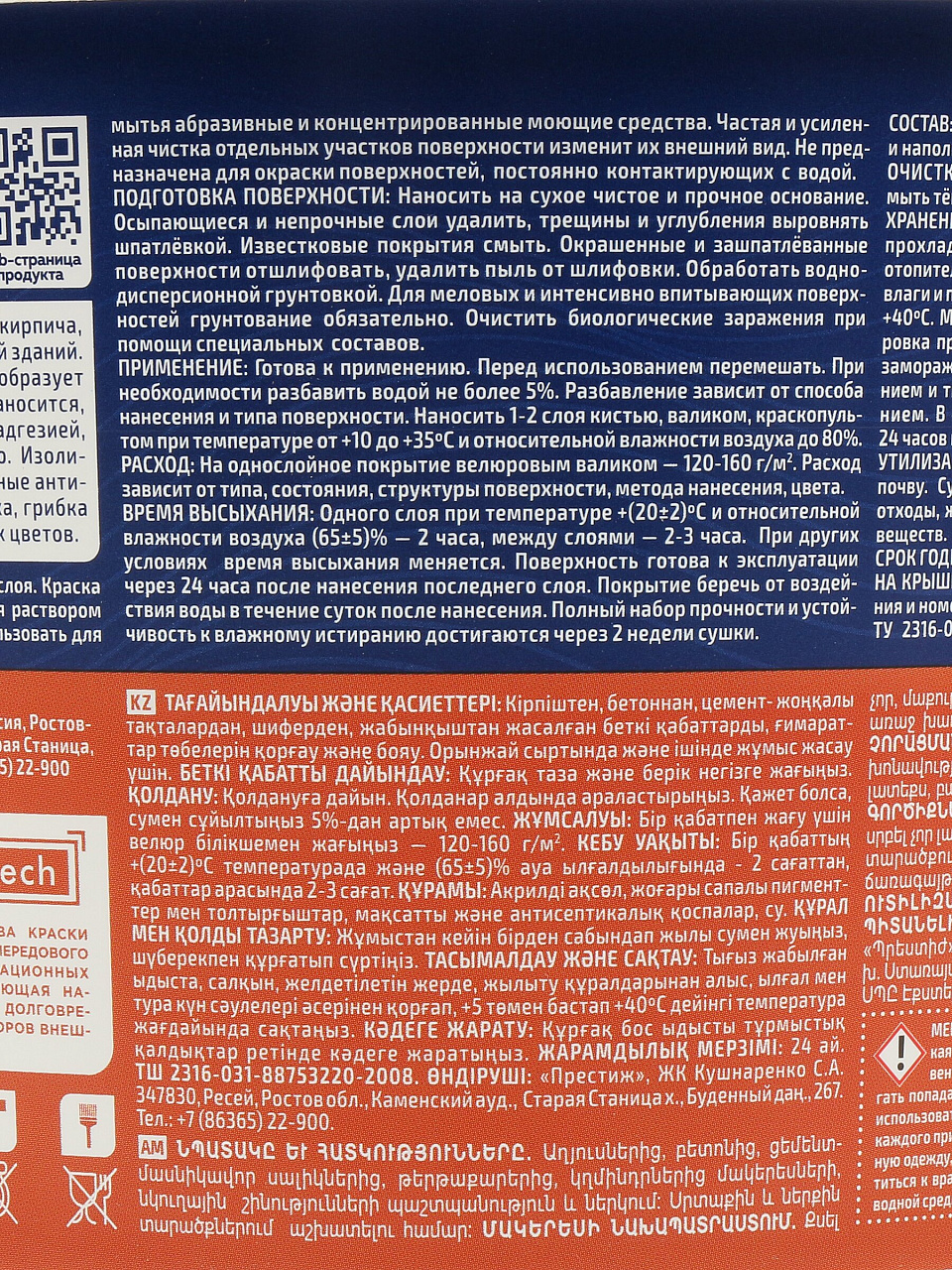 Выбирайте краску Престиж и получите долговечное покрытие фасада по выгодной цене. Оформите заказ онлайн — доставка по России, гарантия свежести и заявленных характеристик.