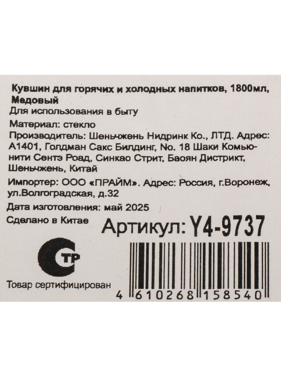 Вы можете приобрести «Кувшин боросиликатное стекло, 1.8 л, с крышкой, Медовый, Y4-9737, для горячих и холодных напитков» и другие товары в нашем интернет-магазине в Брянске по низким ценам и с бесплатным самовывозом.