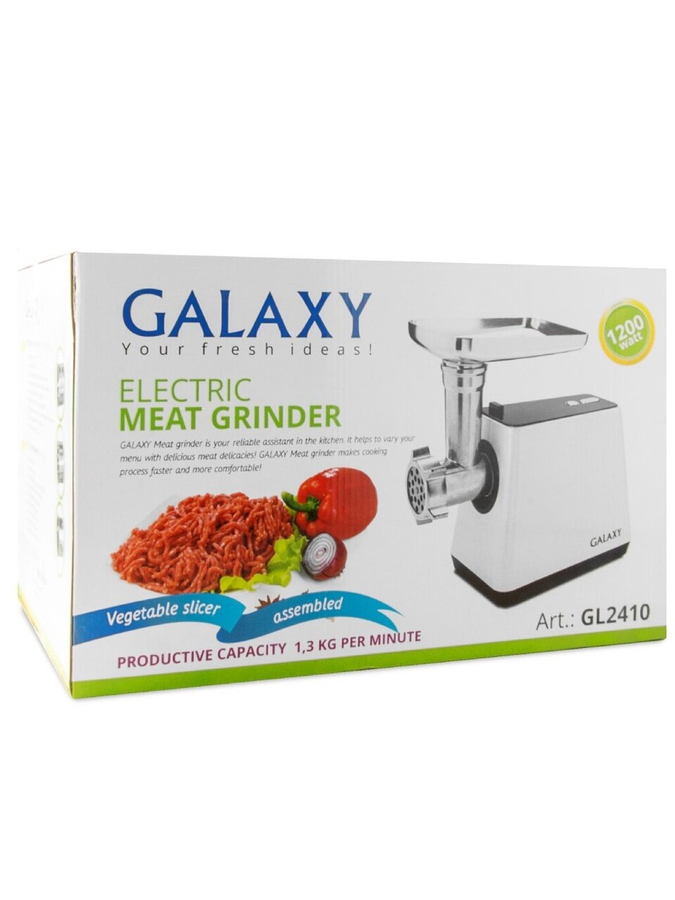 Вы можете приобрести «Мясорубка электрическая Galaxy Line, GL 2410, 1200 Вт, реверс, 1.3 кг/мин, пластик» и другие товары в нашем интернет-магазине в Тамбове по низким ценам и с бесплатным самовывозом.