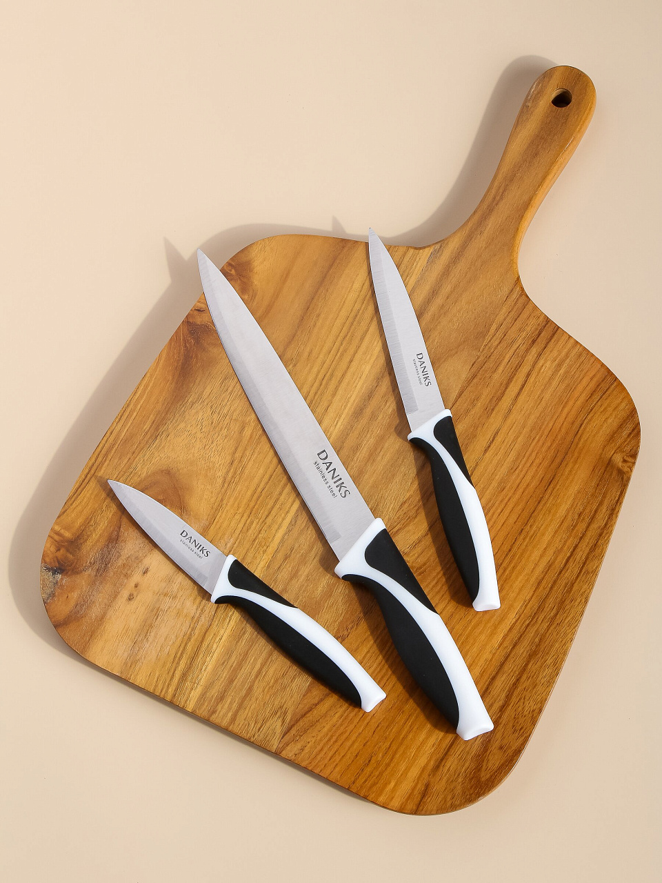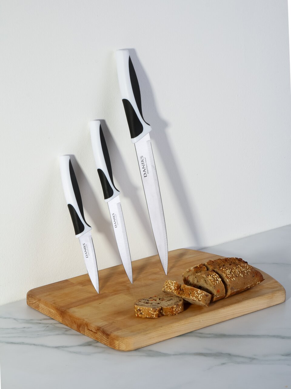 Набор ножей 3 пр. HouseLoft Daniks — идеальный выбор для кухни: нержавеющая сталь, лёгкость ухода, универсальность для дома и дачи по выгодной цене.