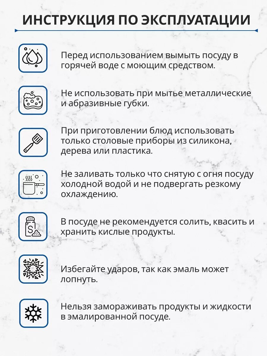 - Надёжная эмалированная сталь: устойчива к царапинам, не впитывает запахи, подходит для всех видов плит, включая индукцию