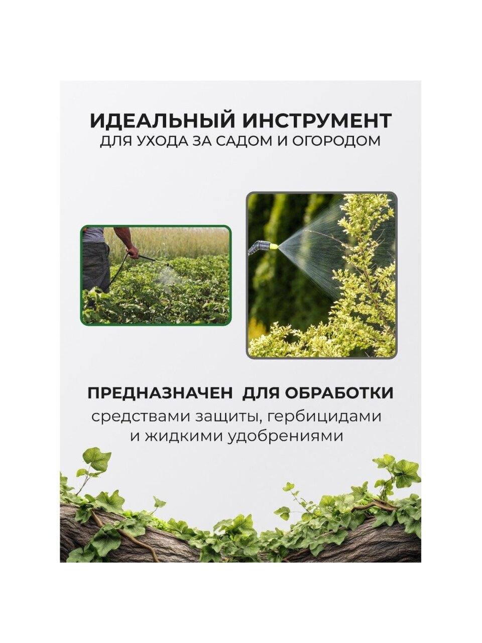 - Распыляемые жидкости: вода, гербициды, пестициды, чистящие средства