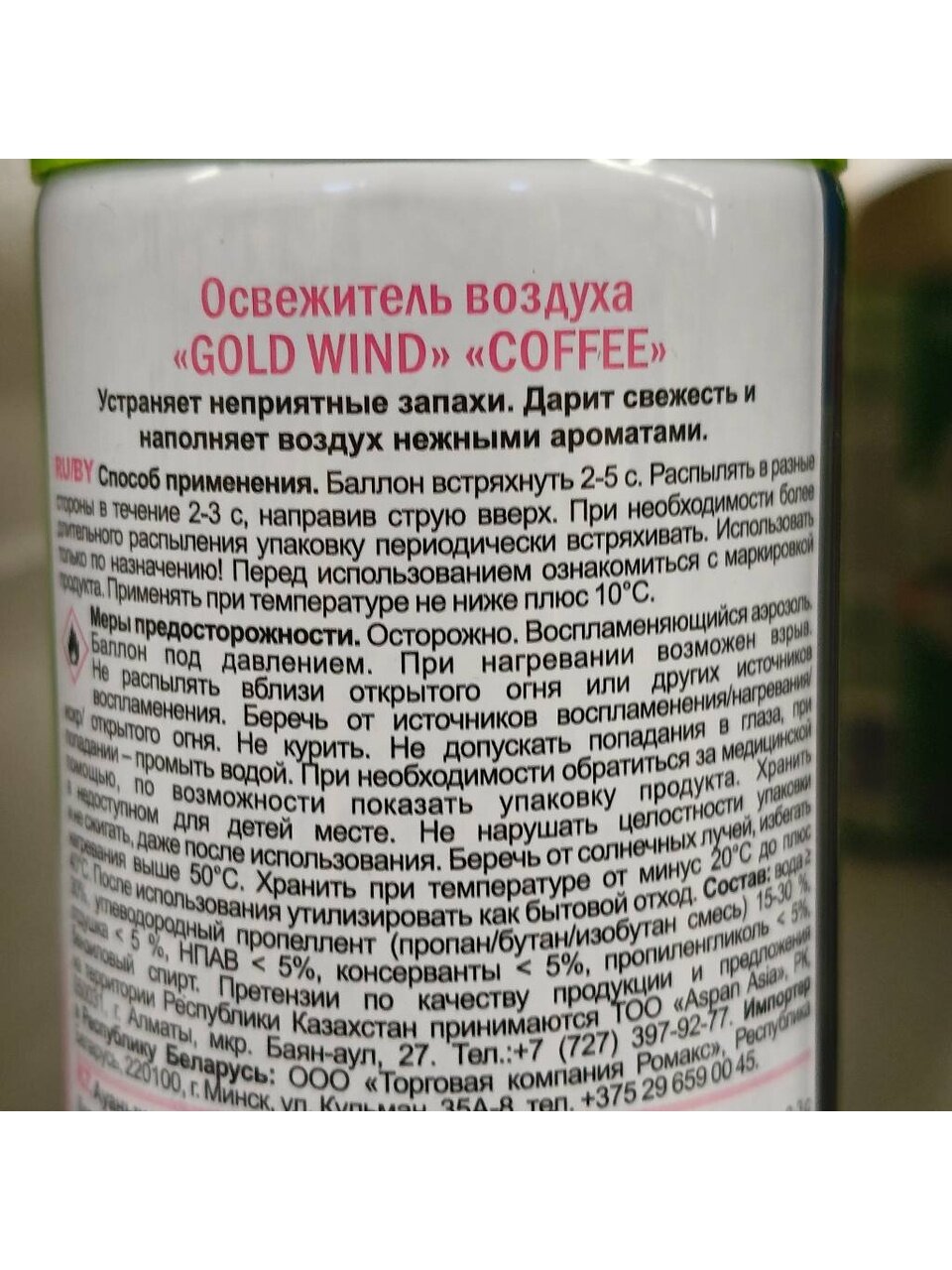 Вы можете приобрести «Освежитель воздуха Gold Wind, 300 мл, Coffee, 2454» и другие товары в нашем интернет-магазине в Воронеже по низким ценам и с бесплатным самовывозом.