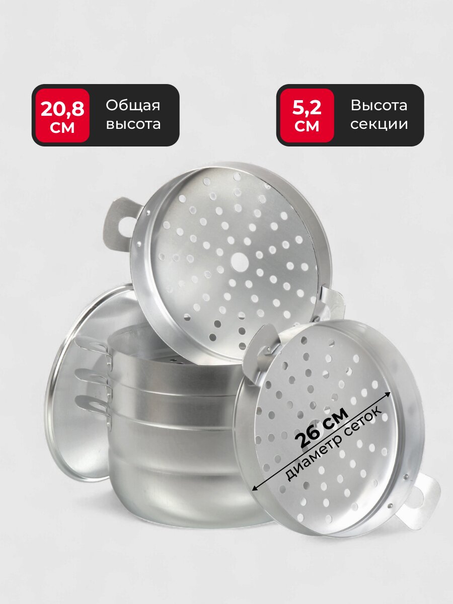 Вы можете приобрести «Мантоварка алюминий, 26 см, 6 л, 4 секции, Калитва, крышка алюминий, 180640» и другие товары в нашем интернет-магазине в Иваново по низким ценам и с бесплатным самовывозом.
