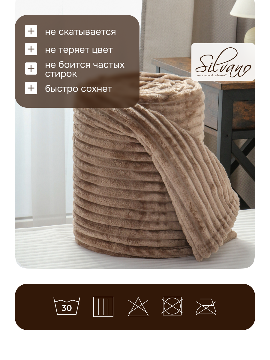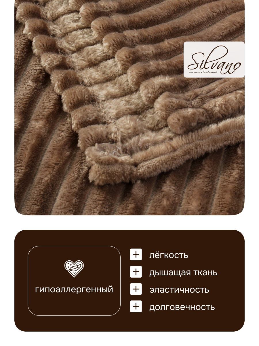 Сравнивая с другими материалами (шерсть, хлопок), микрофибра выигрывает по гипоаллергенности, простоте ухода и цене. Плед не стеганый, не имеет отделки, что делает его особенно мягким и легким. Как использовать плед Silvano? Просто расстелите на кровати или диване, используйте как покрывало или согревайтесь в прохладные дни.