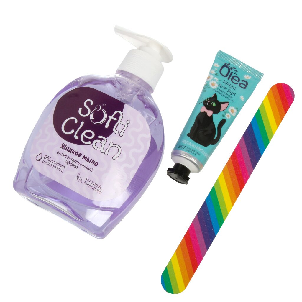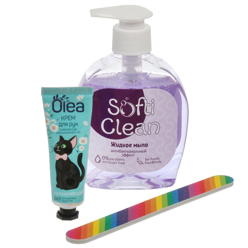 Женский набор для ухода: жидкое мыло Softi Clean 300 мл, крем для рук Olea 30 мл и маникюрная пилка — забота о коже каждый день по выгодной цене.