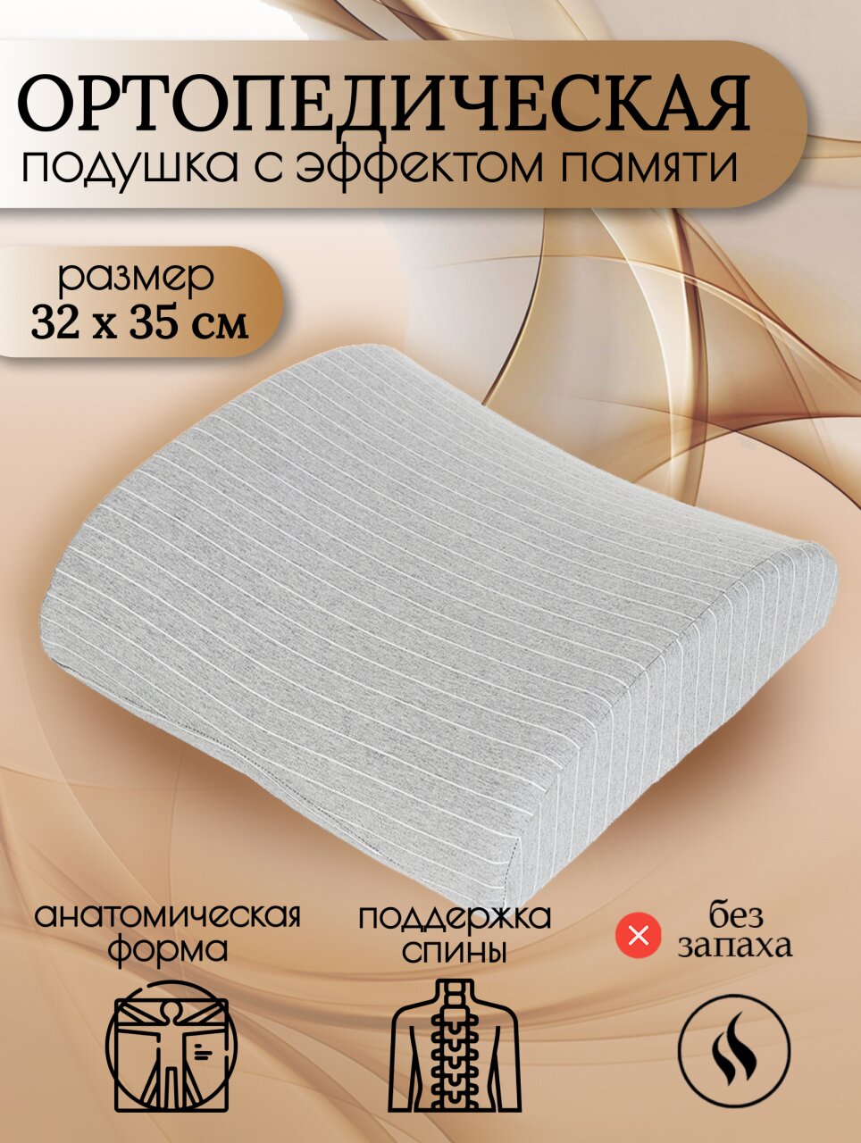 Ортопедическая подушка 32x35 см с эффектом памяти: комфортный сон без боли в шее, гипоаллергенный хлопковый чехол, подходит для дома и дачи.