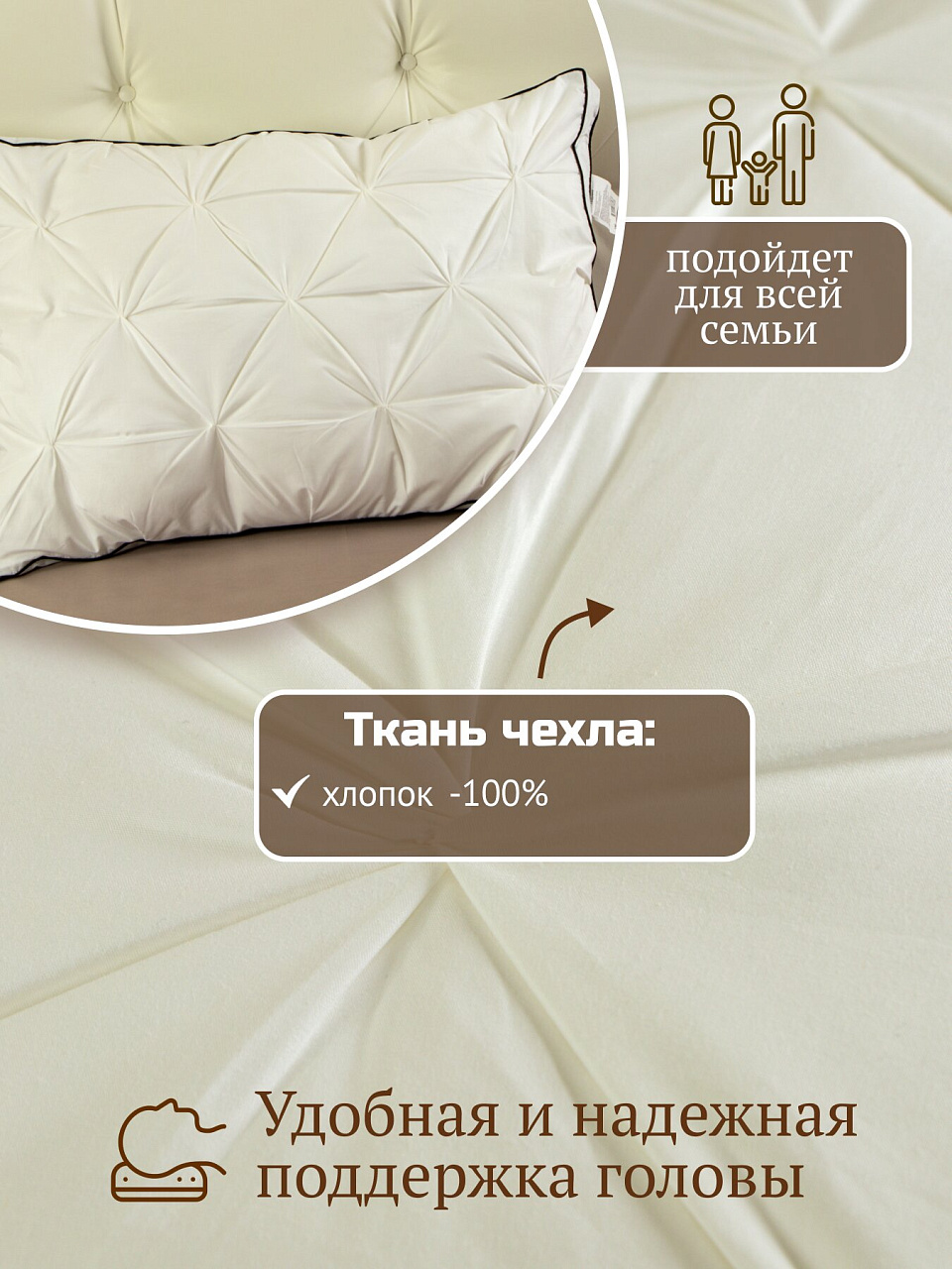Подушка 50×70 см с лебяжьим искусственным пухом и чехлом из 100% хлопка — мягкий комфорт для здорового сна, оптимальный выбор для дома и дачи.
