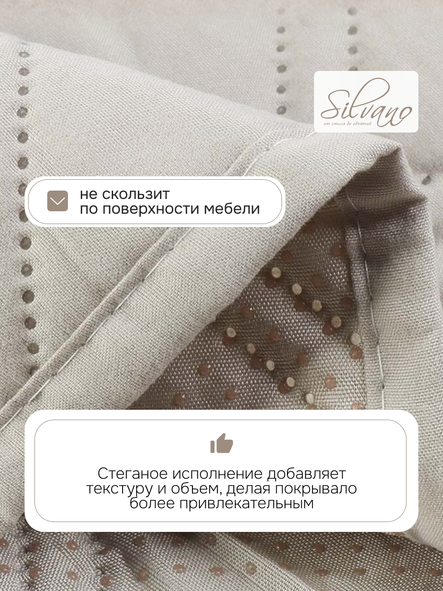 Покрывало изготовлено из 100% полиэстера, что обеспечивает его долговечность и простоту в уходе. Стеганая структура не только придает изделию дополнительную прочность, но и создает уникальный визуальный эффект, который привлекает внимание и подчеркивает геометрические узоры. Бренд Silvano гарантирует высокое качество и стильный дизайн, который станет украшением вашего дома.
