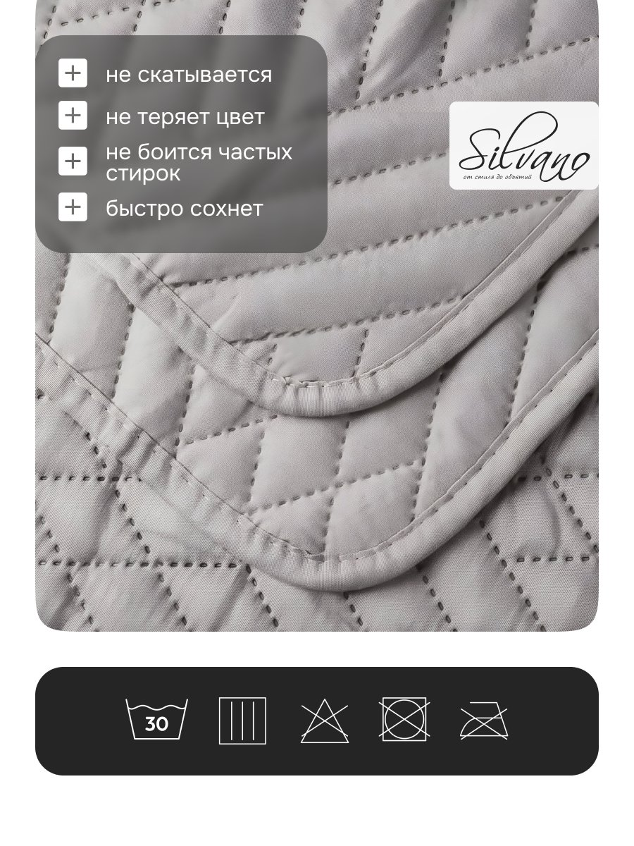 Приобретая это покрывало, покупатель получает не только красивый и функциональный элемент декора, но и практичное решение для защиты мебели. Оно легко стирается и быстро сохнет, что особенно удобно в повседневной жизни. Покрывало Silvano станет отличным выбором для тех, кто ценит стиль, качество и комфорт в своем доме.