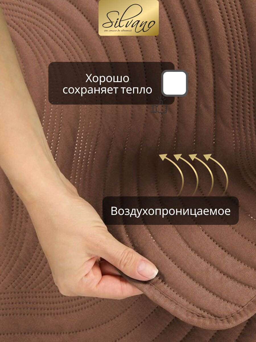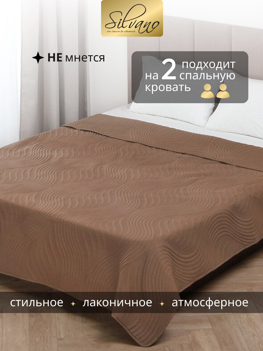 Покрывало евро Silvano Модерн — оптимальное решение для тех, кто ищет, какое покрывало выбрать для спальни или гостиной. Благодаря стеганой структуре и плотному полиэстеру оно не скользит, хорошо держит форму и сохраняет внешний вид даже после многократных стирок. Однотонный шоколадный оттенок актуален для современных интерьеров в стиле минимализм, а универсальный размер 200х220 см подходит для большинства стандартных кроватей и диванов.