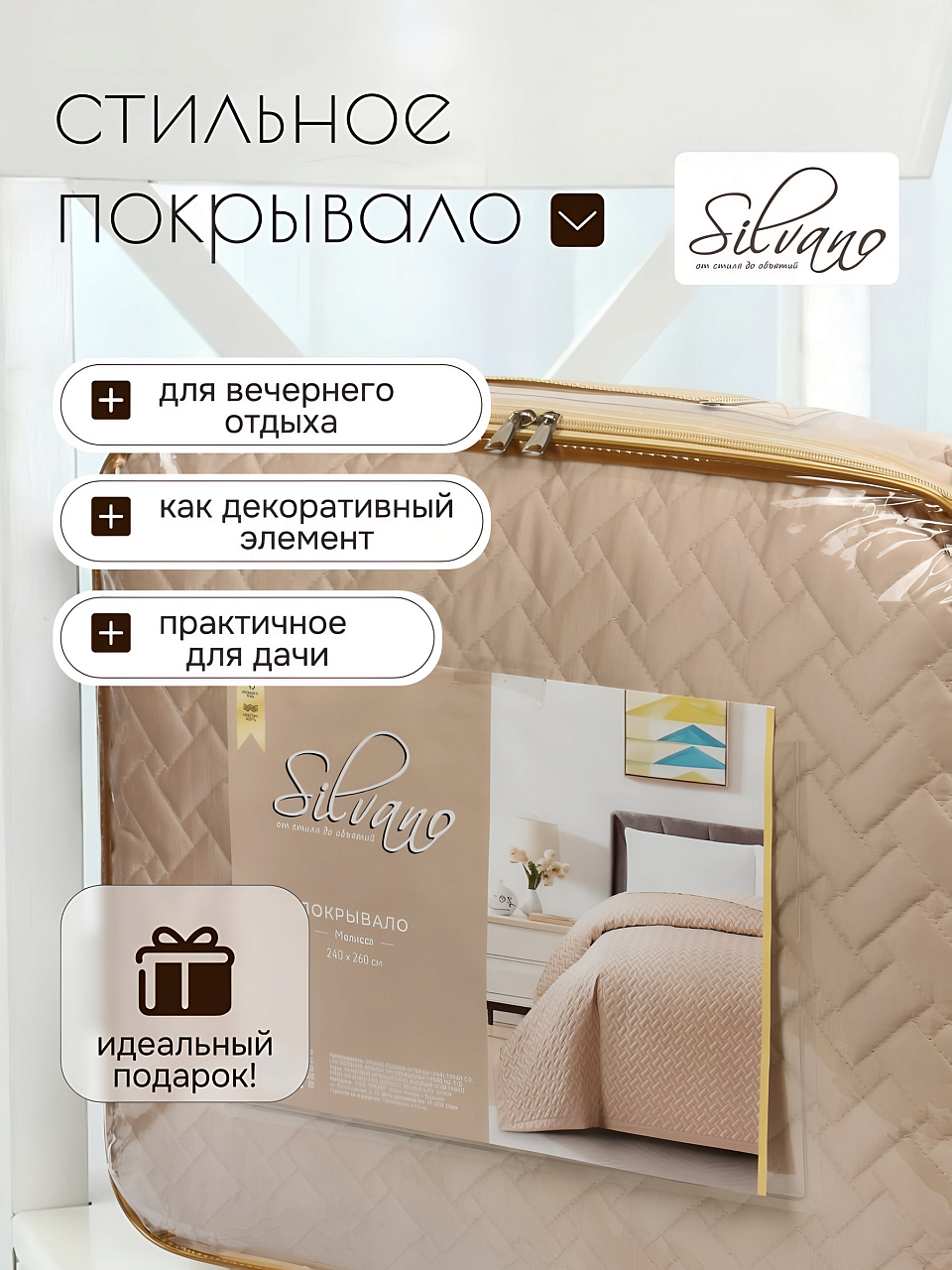 Если вы ищете, какое покрывало выбрать для спальни, чтобы оно было практичным, стильным и недорогим — Silvano Мелисса отвечает этим требованиям. Покрывало сертифицировано, не вызывает аллергии и подходит для ежедневного использования.