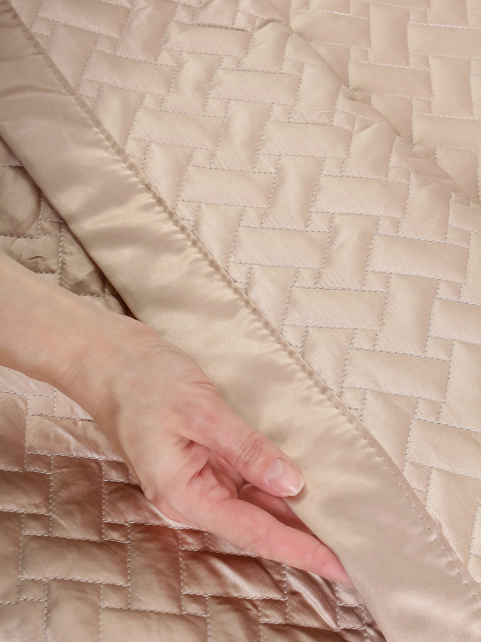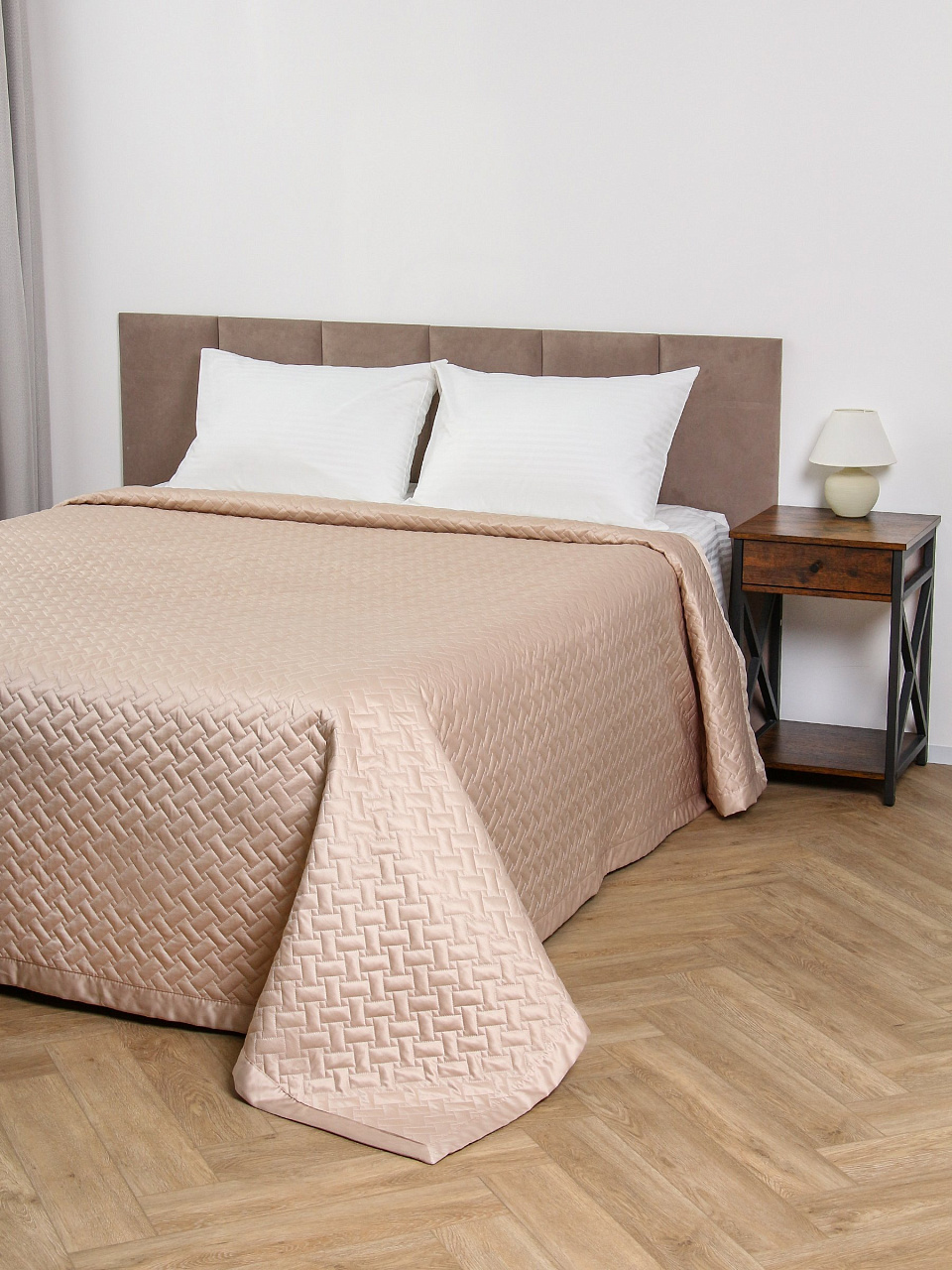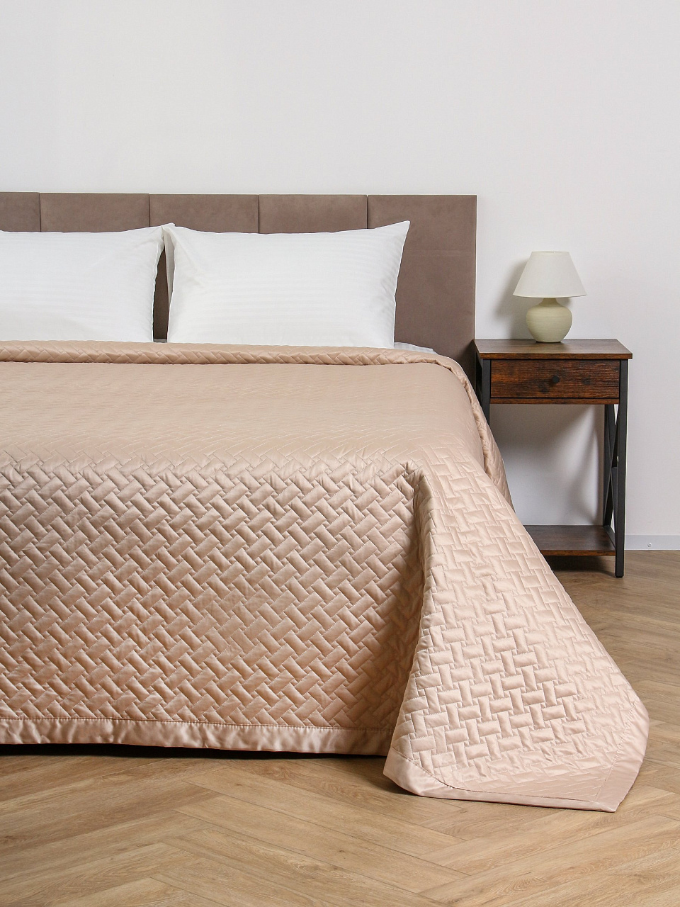 - Современный минимализм: стеганое покрывало с универсальным бежевым оттенком гармонирует с любым интерьером.