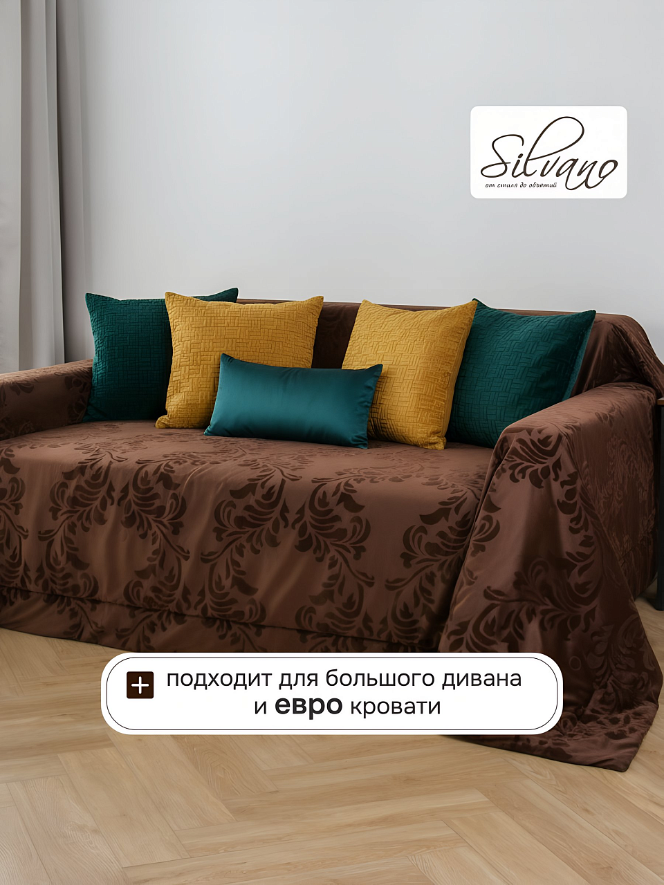Покрывало евро Silvano Classic размером 240x260 см — это оптимальный выбор для тех, кто ищет, какое покрывало выбрать для большой кровати или как обновить интерьер с минимальными затратами. Легкий, но прочный 100% полиэстер делает изделие устойчивым к износу и частым стиркам, сохраняя насыщенный шоколадный цвет. Благодаря универсальному стилю минимализм и однотонному дизайну, покрывало гармонично смотрится как в спальне, так и в гостиной.
