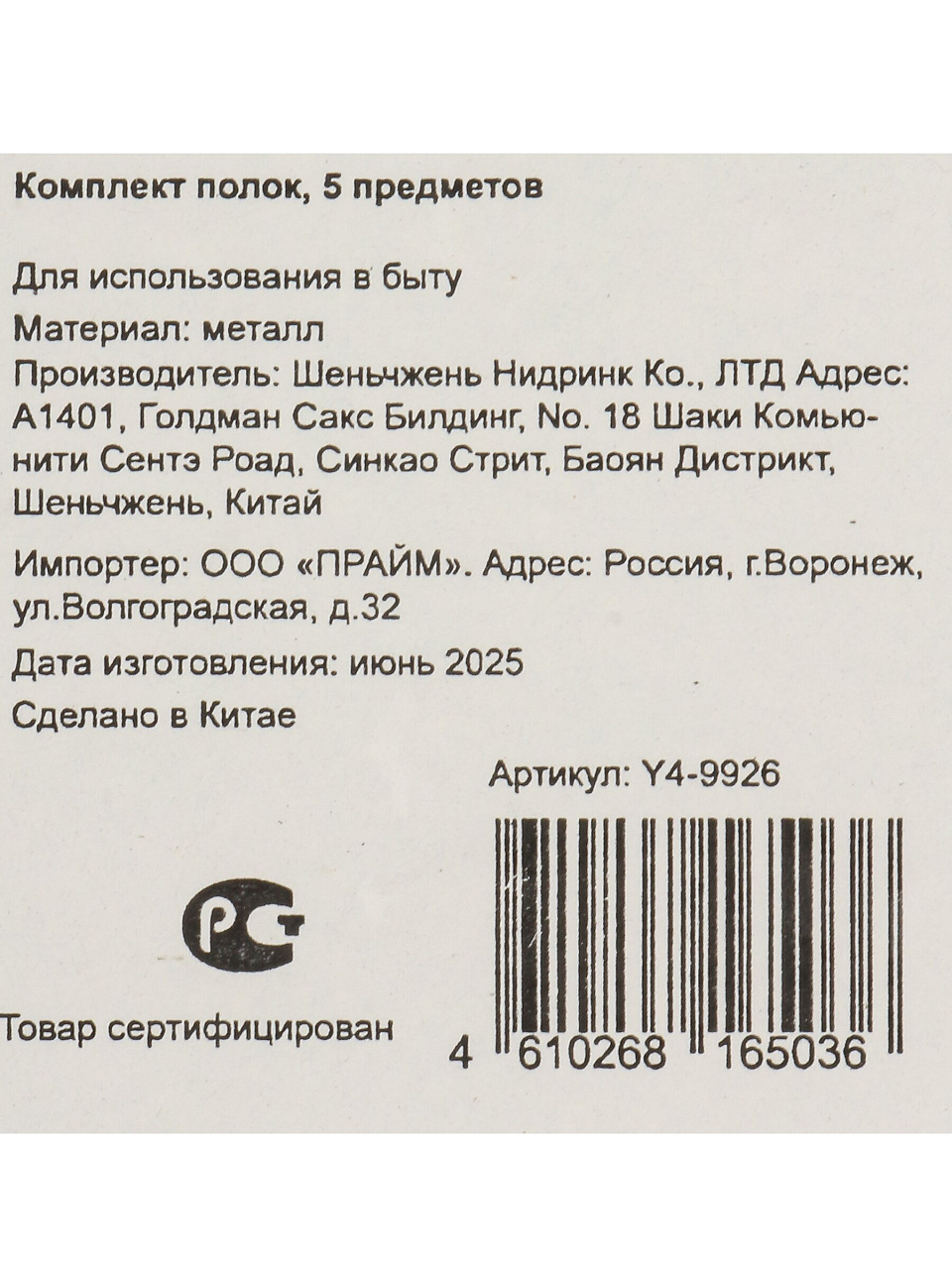 Комплект полок, 5 пр, Y4-9926