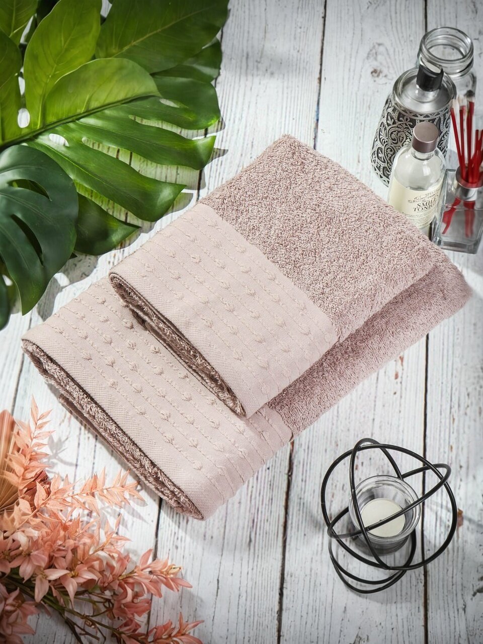 - 100% хлопок: натуральная махровая ткань с жаккардовым бордюром — комфорт без раздражения даже для чувствительной кожи