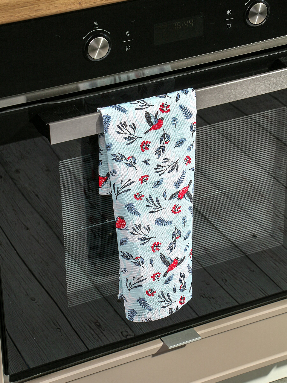 Кухонное полотенце 35х50 см из 100% хлопка ТДЛ Текстиль «Снегири»: быстро впитывает, не линяет, идеальный выбор для дома, дачи и подарка.