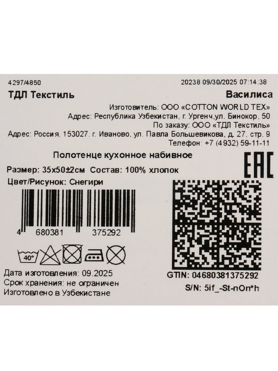 Закажите кухонное полотенце ТДЛ Текстиль «Снегири» по выгодной цене — получите быструю доставку и уверенность в качестве проверенного бренда.