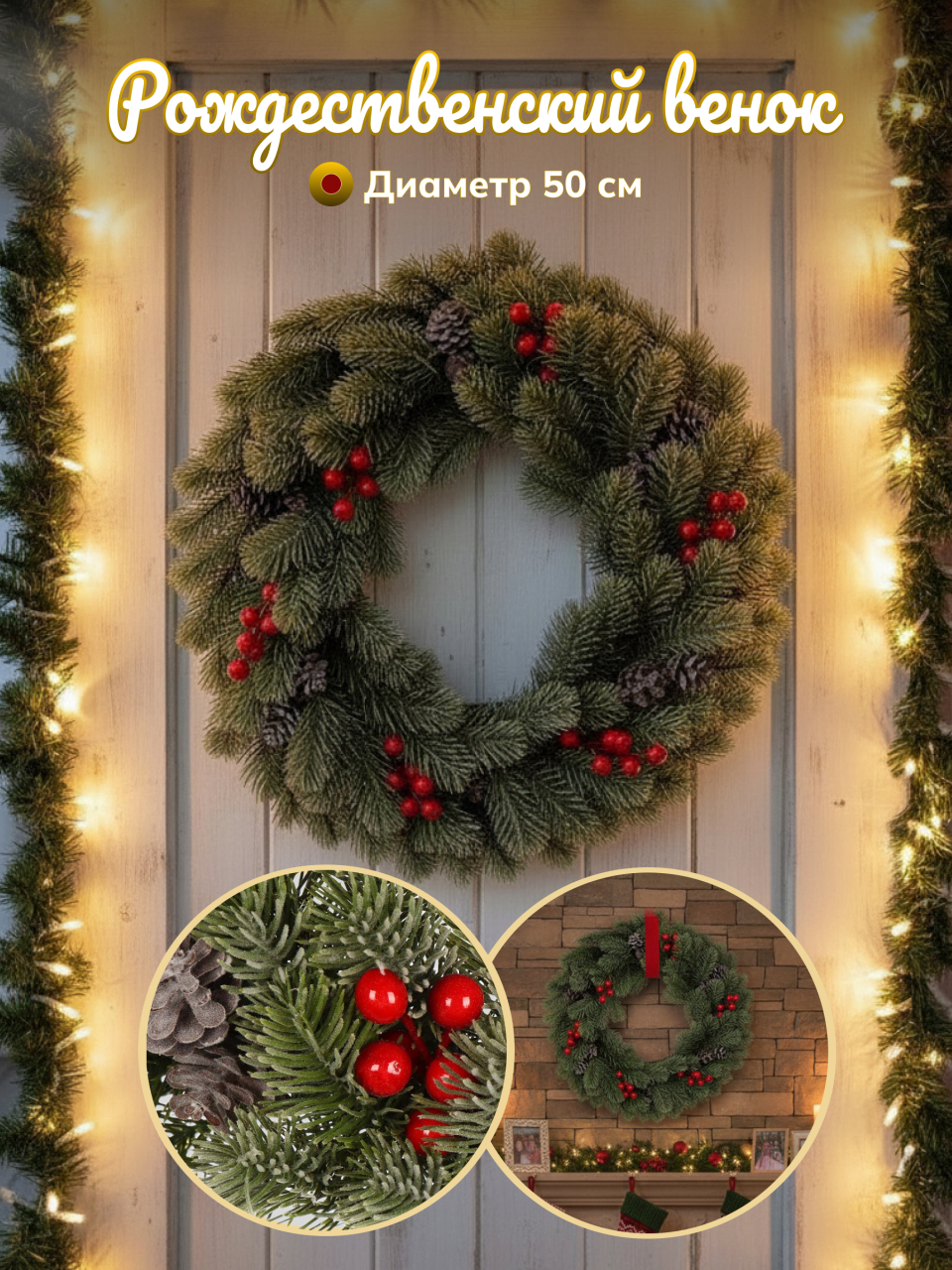 Вы можете приобрести «Венок рождественский 50 см, с ягодами и шишками, SYHHA-0823035» и другие товары в нашем интернет-магазине в Нижнем Новгороде по низким ценам и с бесплатным самовывозом.
