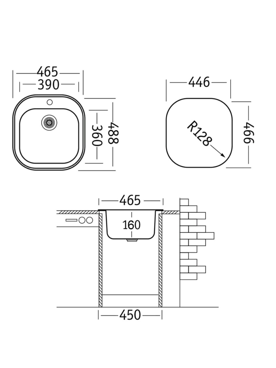 Мойка кухонная врезная, Ukinox, Галант, нержавеющая сталь, 465х488 мм, GAM465.488 -GT6K 0C
