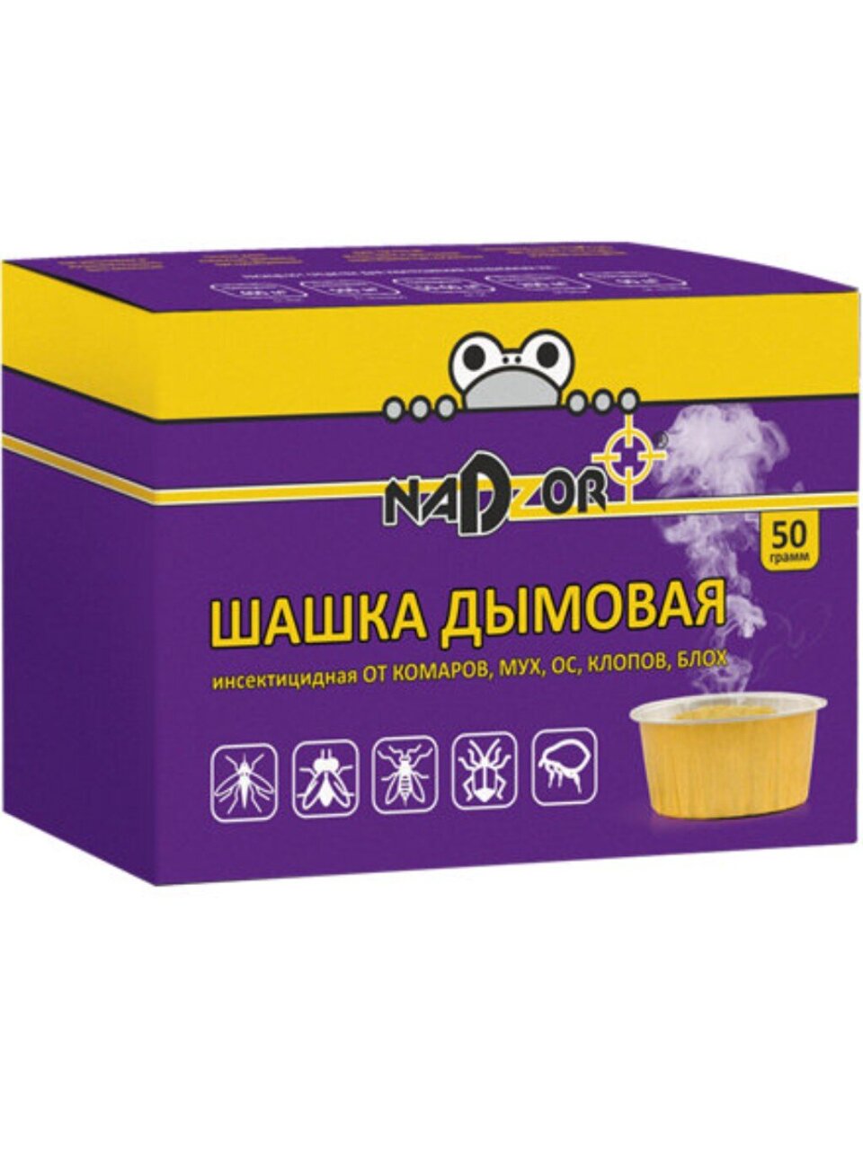 Репеллент от мух, комаров, ос, клопов, блох — дымовая шашка Nadzor 50 гр эффективно уничтожает насекомых в помещении. Тление шашки сопровождается активным выделением дыма, гибель насекомых начинается через 1-2 минуты и достигается 100% через 15-20 минут. В составе инсектициды контактного и кишечного действия, воздействующие через дыхательные пути, хитиновый покров и пищеварительную систему насекомого. Отличный выбор для быстрой обработки помещений и защиты от вредителей.