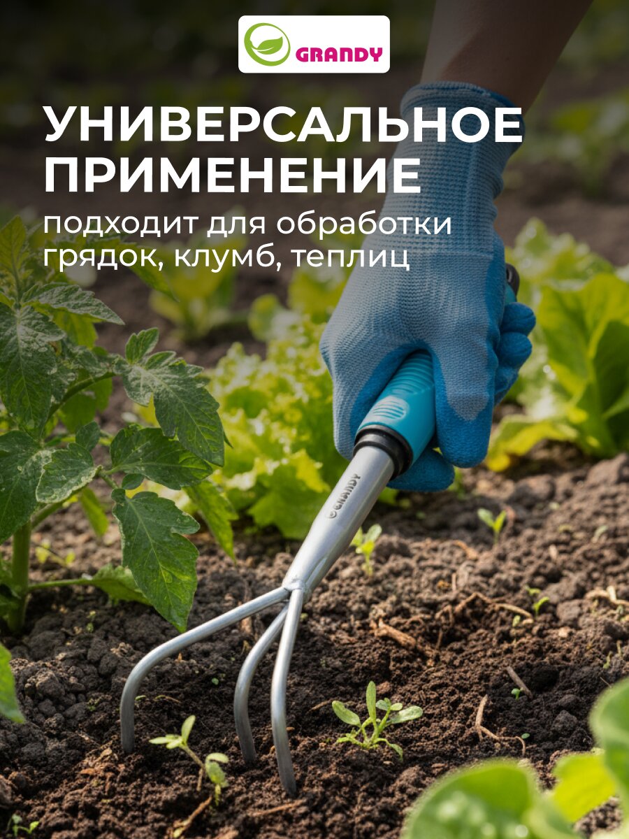 Идеален для рыхления почвы на даче, в огороде, на клумбах и даже в цветочных горшках. Лёгкий вес и эргономичная рукоятка делают его удобным для длительной работы.