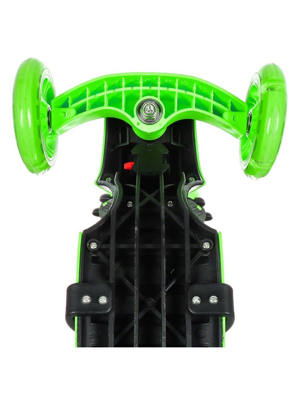 Удобные грипсы на руле предотвращают соскальзывание рук. Остановка легко осуществляется с помощью ножного тормоза. Самокат имеет складную конструкцию, которая не занимает много места при хранении.