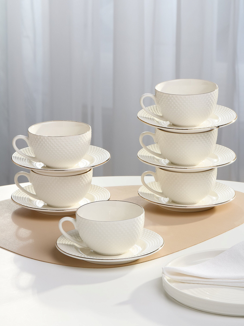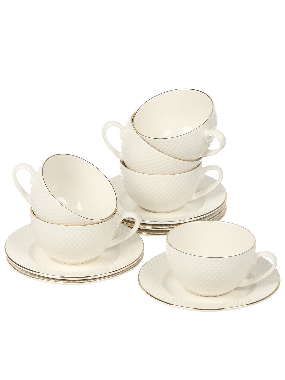 В наборе 12 предметов: 6 чашек по 275 мл и 6 блюдец — идеально для сервировки на 6 человек.