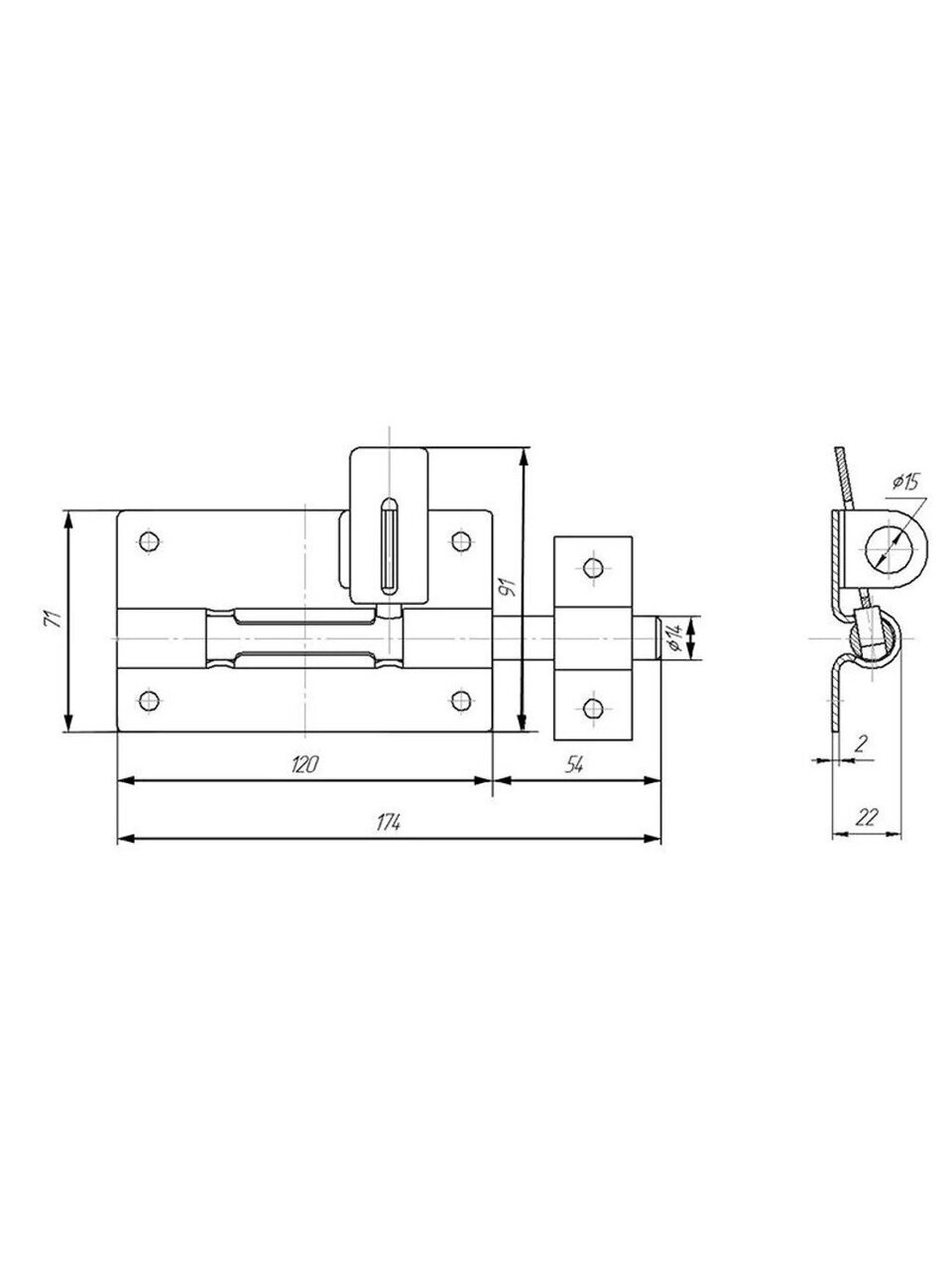 Засов накладной с проушиной для деревянных и металлических дверей. Задвижка обеспечивает дополнительную защиту. Она представляет собой компактную конструкцию с ригелем в качестве запирающего элемента.