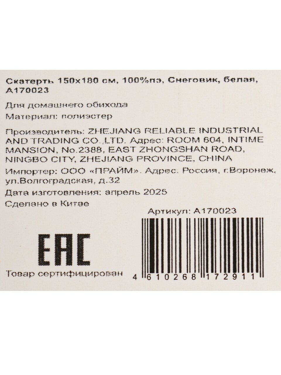 Вы можете приобрести «Скатерть 150х180 см, 100% полиэстер, Снеговик, белая, A170023» и другие товары в нашем интернет-магазине в Ставрополе по низким ценам и с бесплатным самовывозом.
