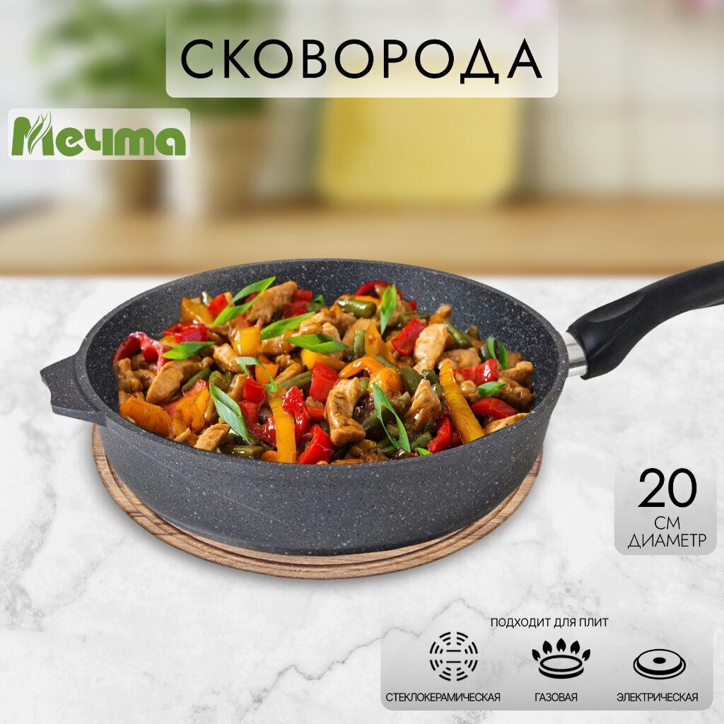Сковорода литой алюминий 20 см Мечта Гранит — антипригарное покрытие, толстое дно 5,5 мм, идеальна для жарки без масла и легкой мойки.